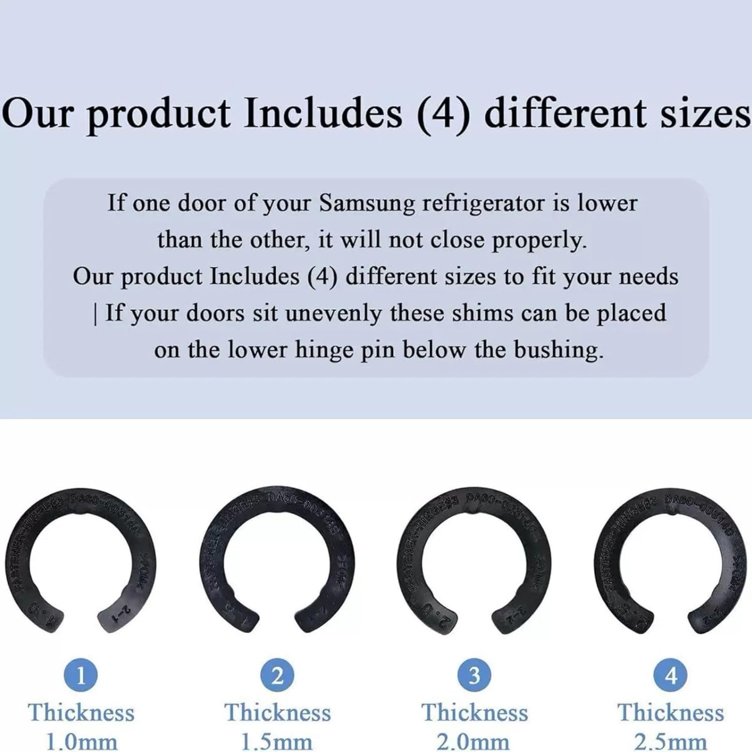 ✨[Product Function] If one door of your Samsung refrigerator is lower than the other, it will not close properly. Our product includes 8 different sizes to fit your needs. If your doors sit unevenly, these shims can be placed on the lower hinge pin below the bushing.