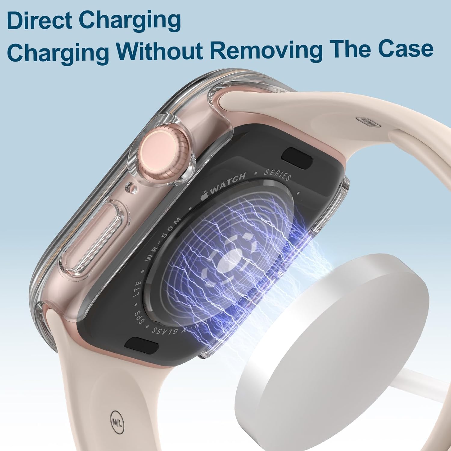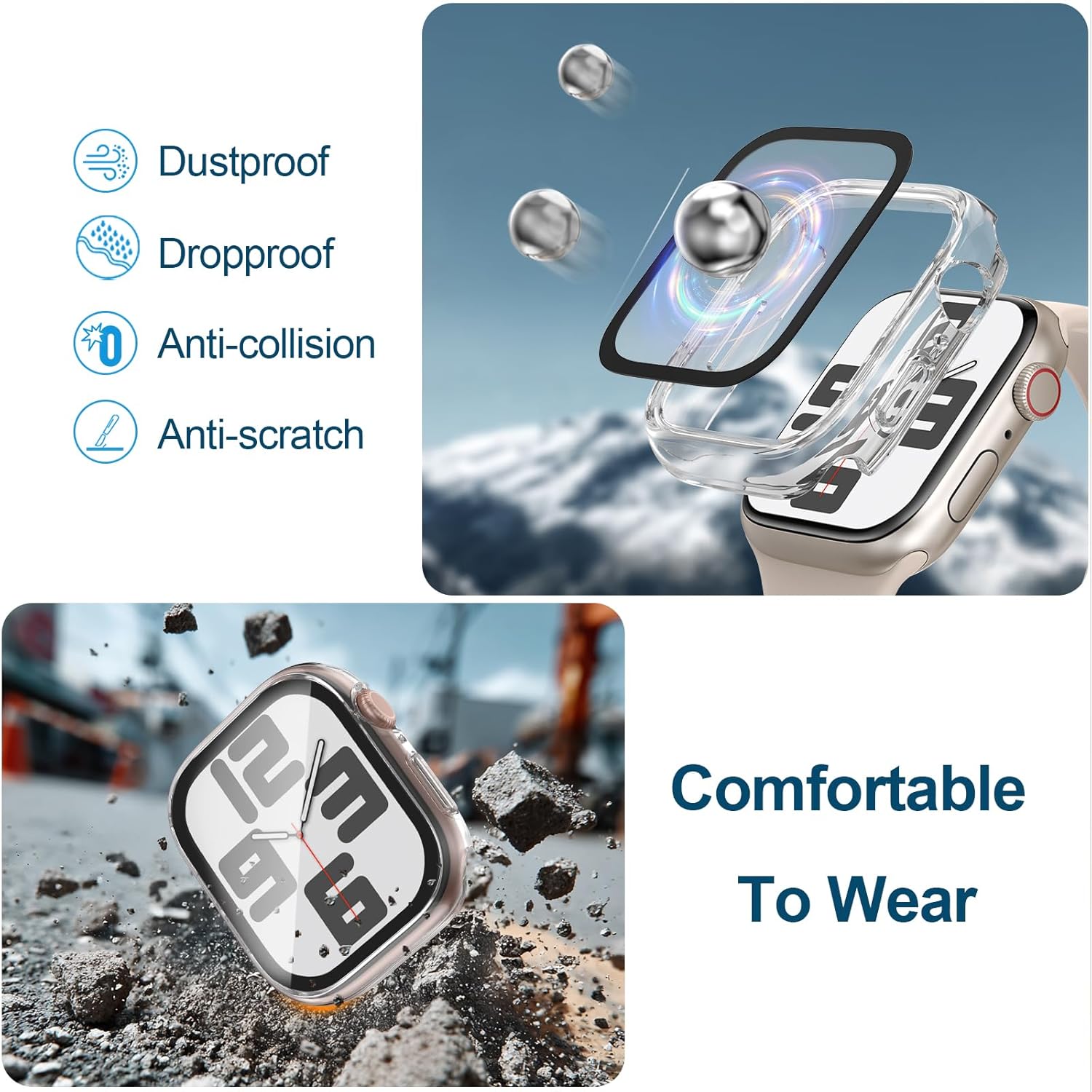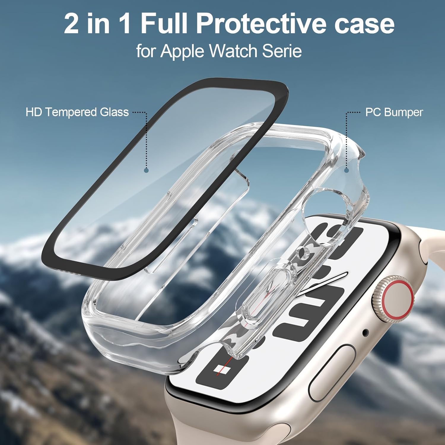 【2 In 1 Case】Durable ultra-thin hard PC bumper and built-in clear tempered glass screen protector,full coverage,designed to protect the exterior surface of your watch without compromising its usability.