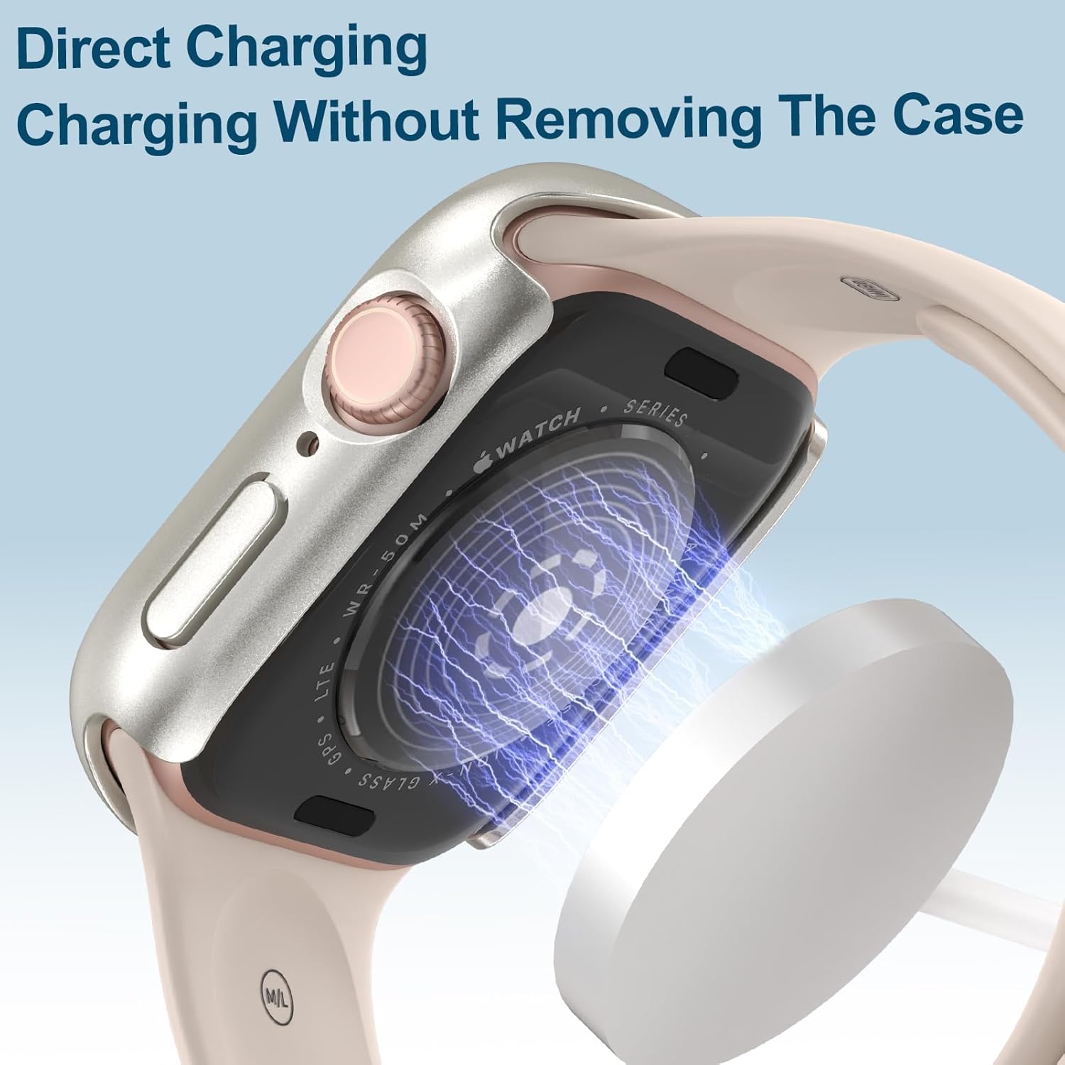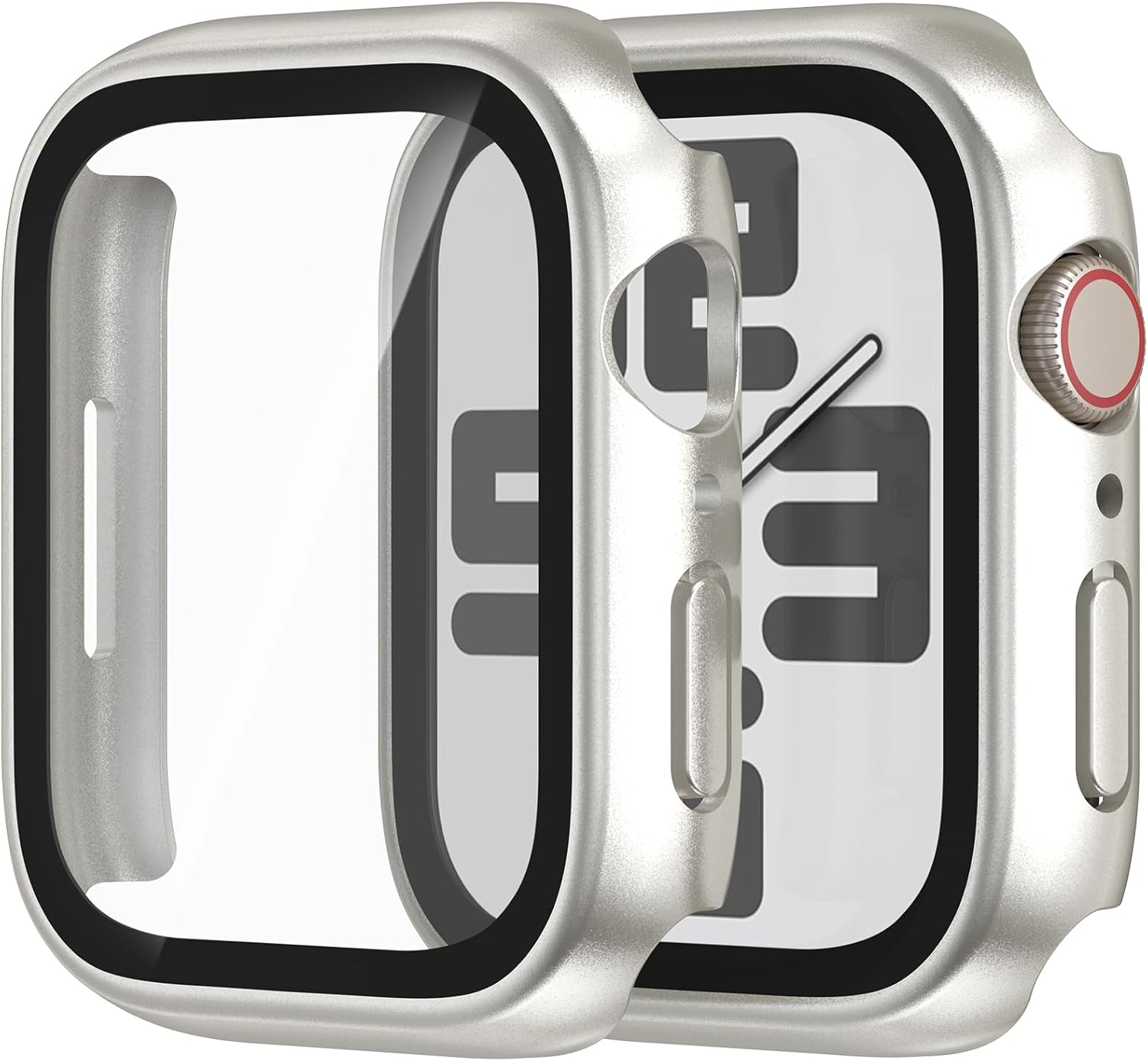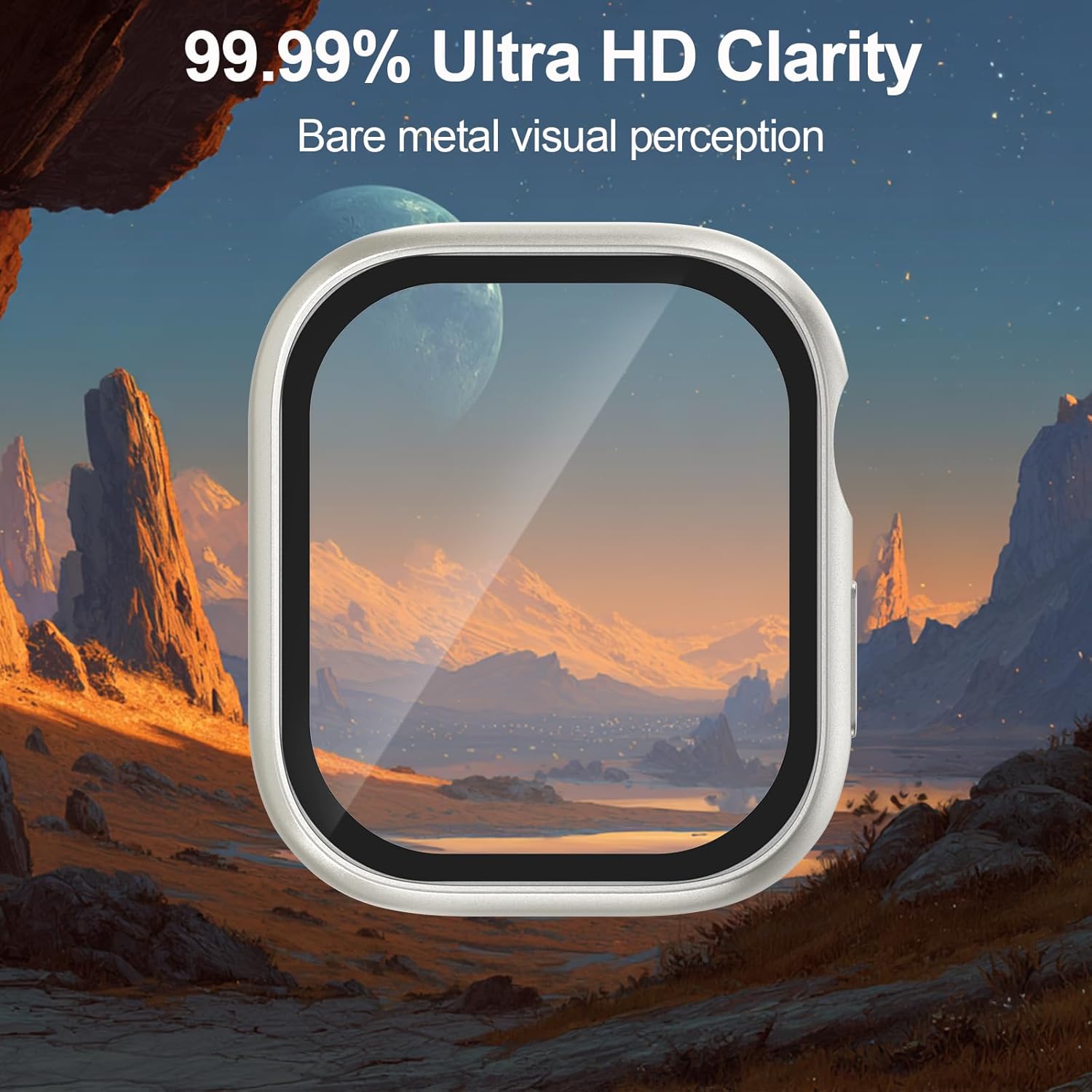 【2 In 1 Case】Durable ultra-thin hard PC bumper and built-in clear tempered glass screen protector,full coverage,designed to protect the exterior surface of your watch without compromising its usability.