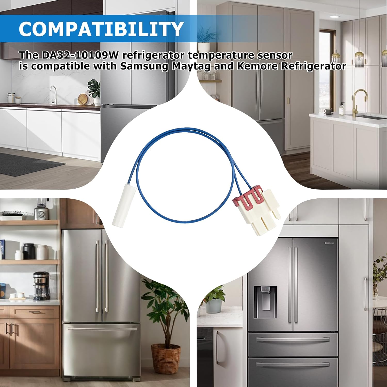 This product serves as a direct replacement for the DA32-10109W temperature sensor, compatible with Maytag, Kenmore, and Samsung appliances