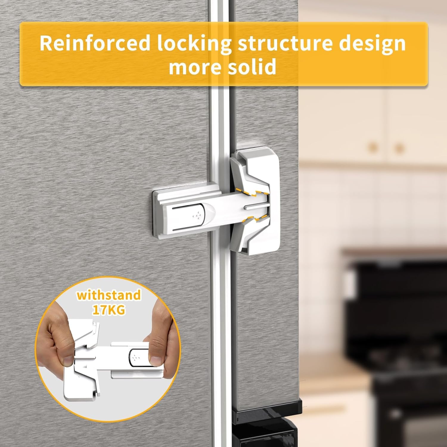 Open Functionality & Superior Material: The lock incorporates a convenient always-open functionality activated by sliding the center button backward. Crafted from ABS material, the child safety lock is purpose-built for refrigerators without the need for keys or belts, ensuring both environmental friendliness and safety