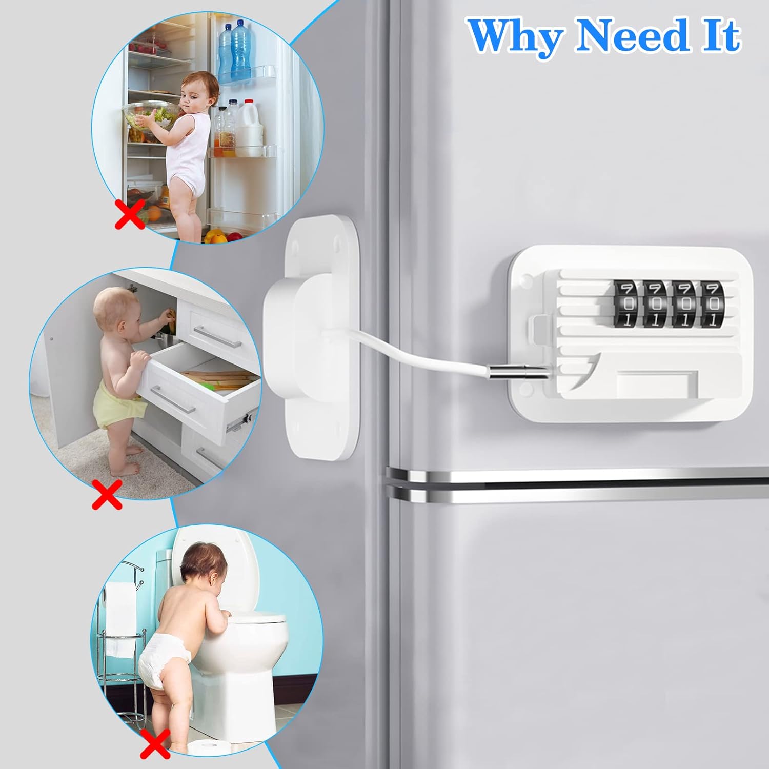 Safety Lock to Protect Child: This safety lock with Combination lock can prevent babies from pinching their fingers when they open the refrigerator; prevent babies from eating food forbidden by their parents; even babies accidentally lock themselves in the refrigerator.