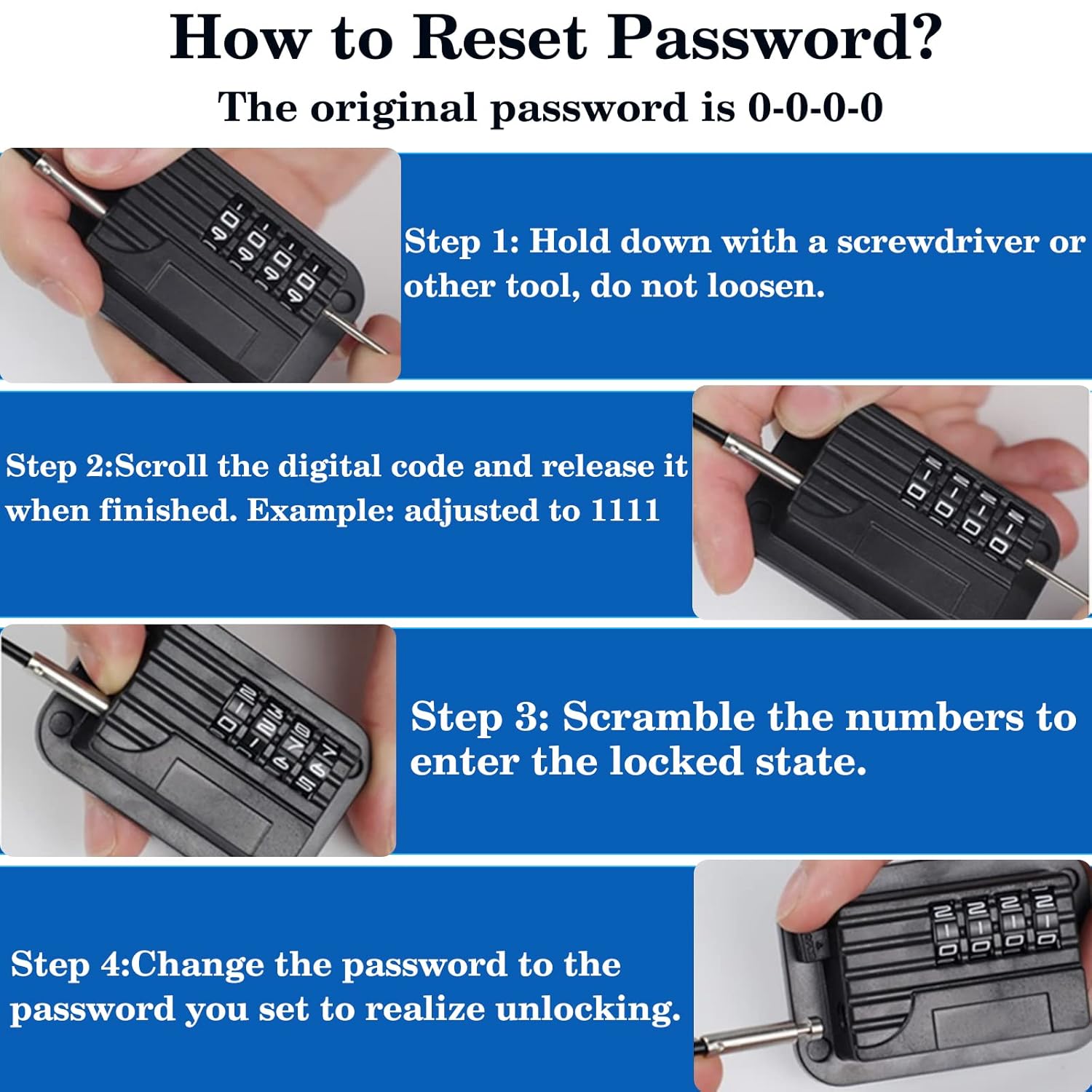 Password Setting: The initial password of this refrigerator lock is 000 (not recommended to change the password because many people forget the new password), changing the password is very simple, just need to keep the password at “000” from the hole on the right Plug in the gadget in and start resetting your password. Release the inserted tool after your Password is fully set.