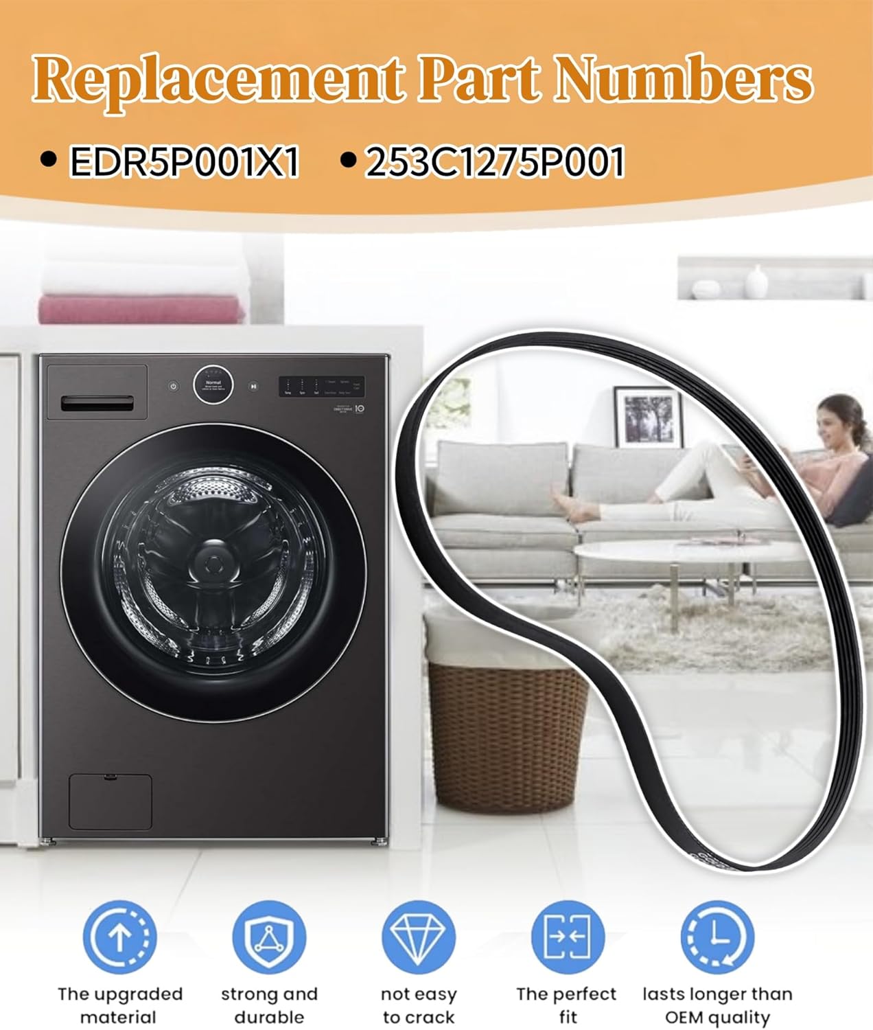 Premium Material:Washer drive belt is made from premium rubber and has undergone thorough testing by the manufacturer to guarantee optimal performance for your washing machine