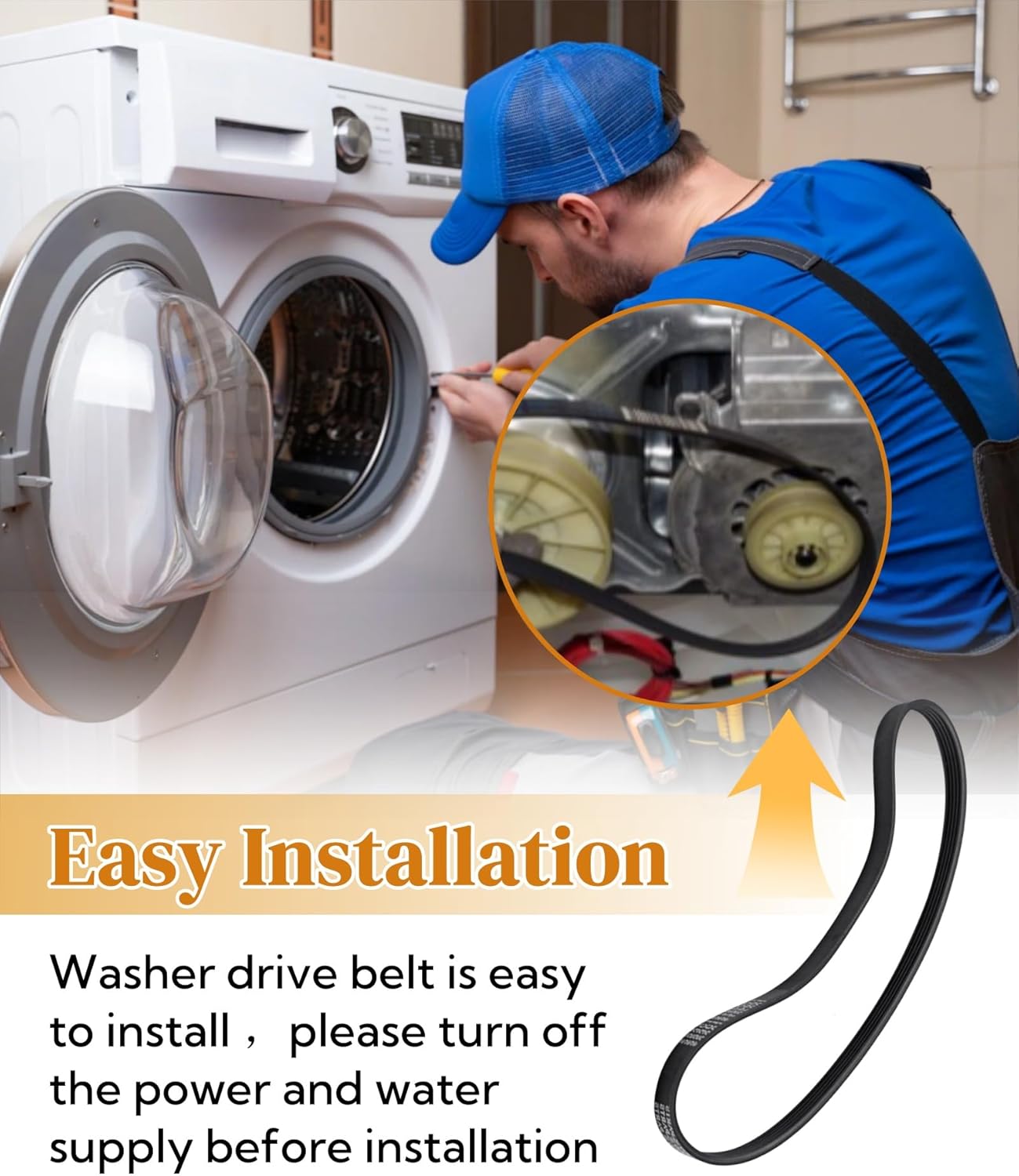 Easy Installation:Washer motor drive belt is easy to install,please turn off the power and water supply before installation