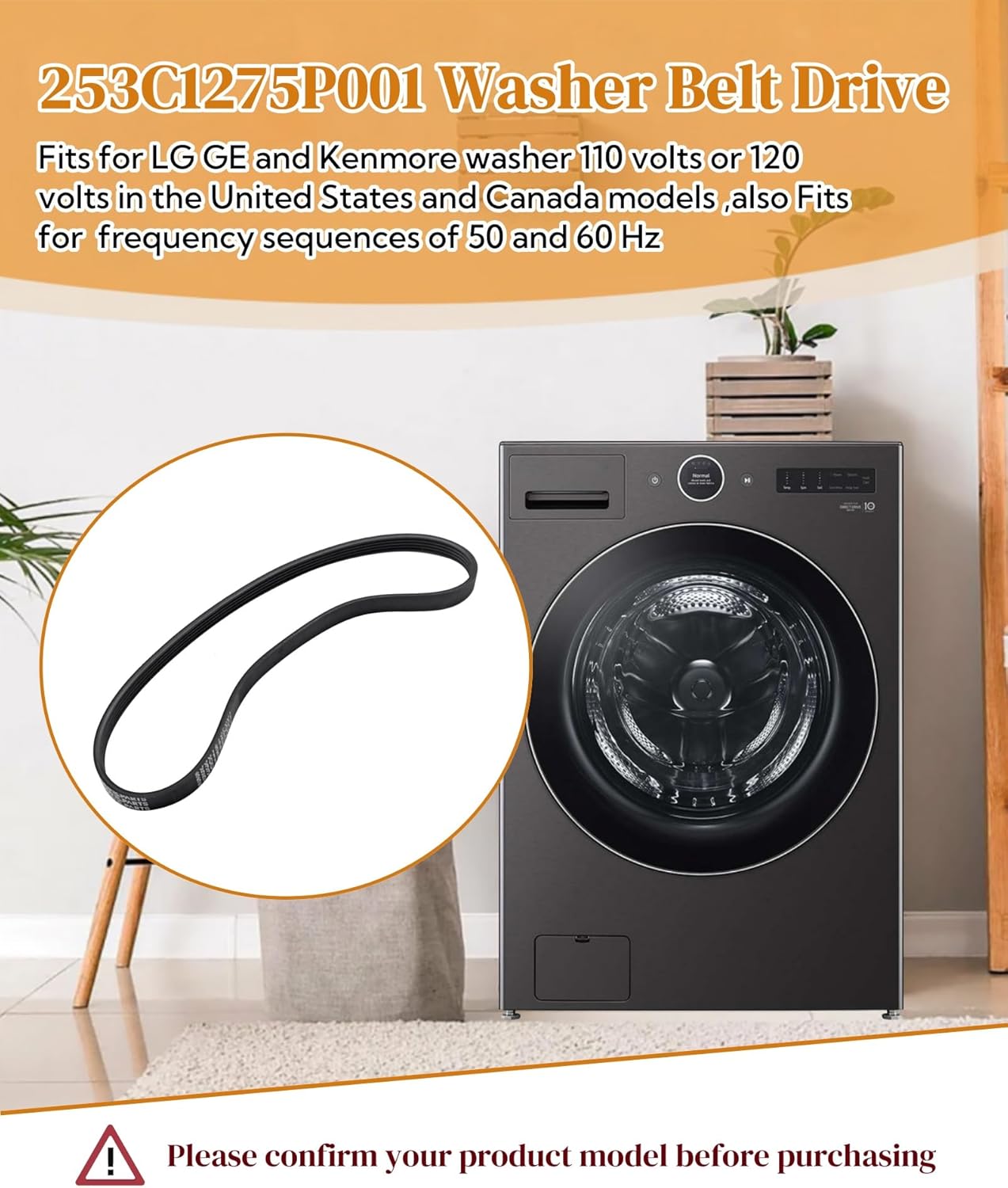 Compatible Models:253C1275P001 Washer belt drive fits for LG GE and Kenmore washer