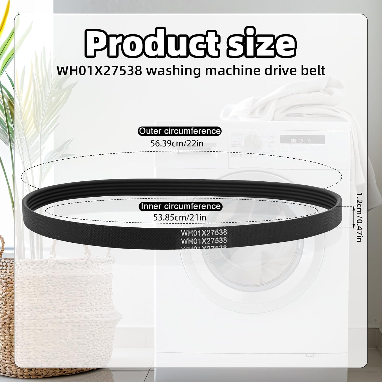 Product Size: Our WH01X27538 washer drive belt has an inner circumference of approximately 53.85cm/21in, an outer circumference of about 56.39cm/22in, and a width of about 1.2cm/0.47in. It’s designed to provide a snug and secure fit for your washing machine.