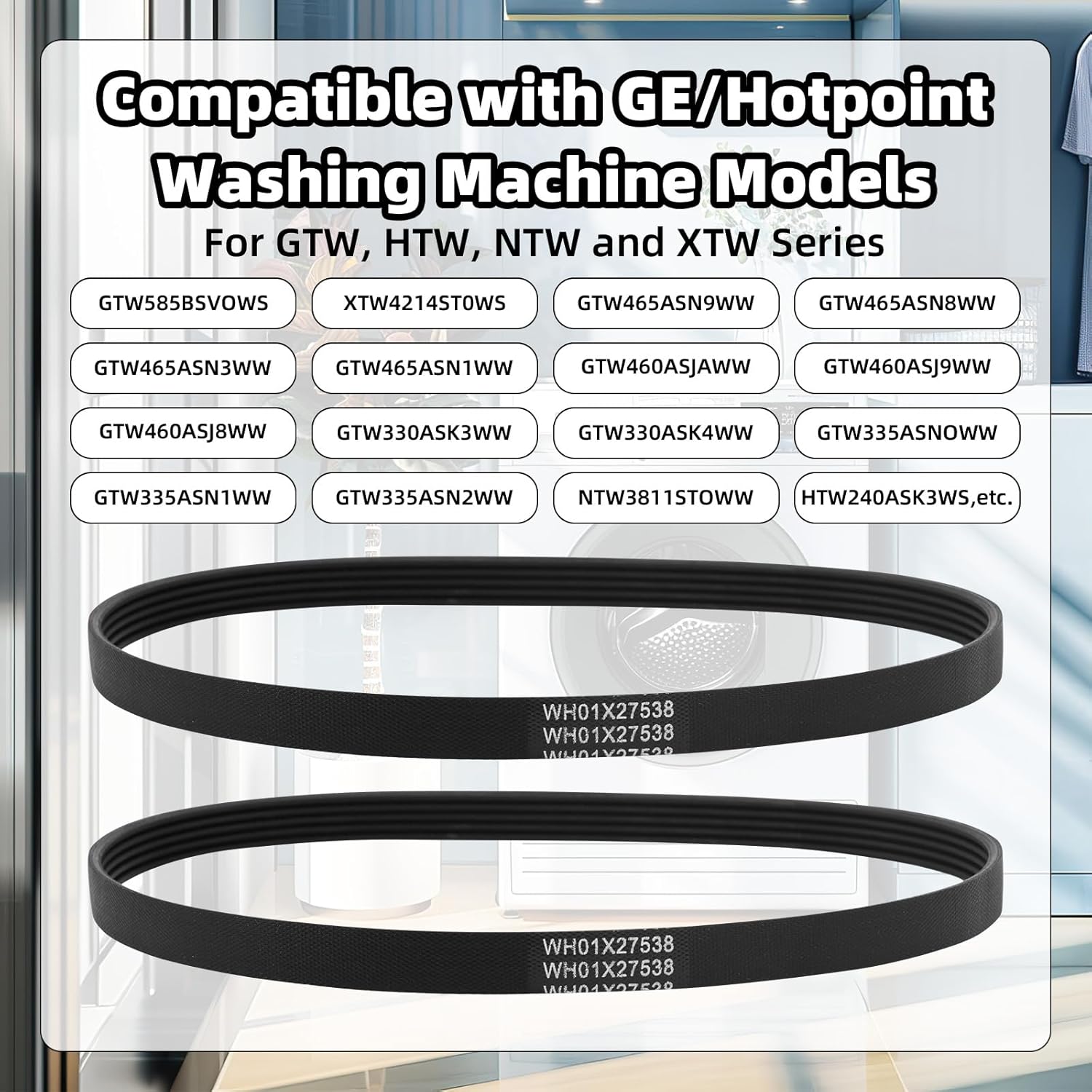 Buy 2pcs WH01X27538 Washer Drive Belt Replacement, Compatible with GE Washing Machines Replaces Parts AP6328256 PS12299369 4587903 290D1101P005 (Black) online from amazon or ebay or walmart 2pcs WH01X27538 Washer Drive Belt Replacement, Compatible with GE Washing Machines Replaces Parts AP6328256 PS12299369 4587903 290D1101P005 (Black)