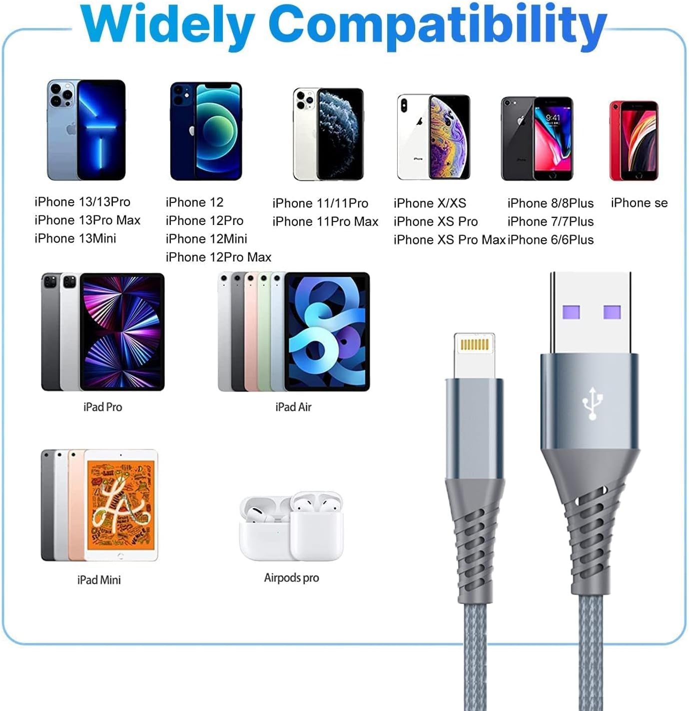 【Apple MFi Cerfitied Charger】: Our apple charger cable compatible with iPhone 14/13/12/11/Pro/Max/Mini/iPhone XS/iPhone Max/iPhone XR/iPhone X/iPhone 8 Plus/iPhone 8/iPhone 7 Plus/iPhone 7/iPhone 6s Plus/iPhone 6s/iPhone 6 Plus/iPhone 6/iPhone 5s/iPhone 5c/iPhone 5/iPad Pro/iPad Air/Air 2/iPad mini/mini 2/mini 4/iPad 4th gen/iPod Touch 5th gen/ iPod.