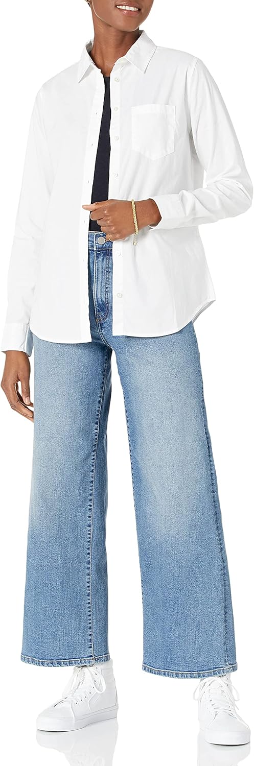 Amazon Essentials Womens Regular-Fit Long-Sleeve Button-Down Poplin Shirt