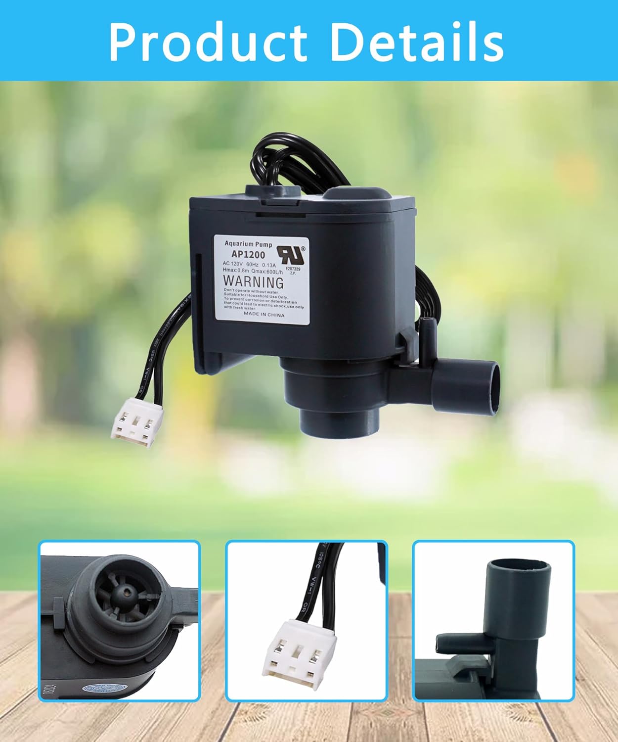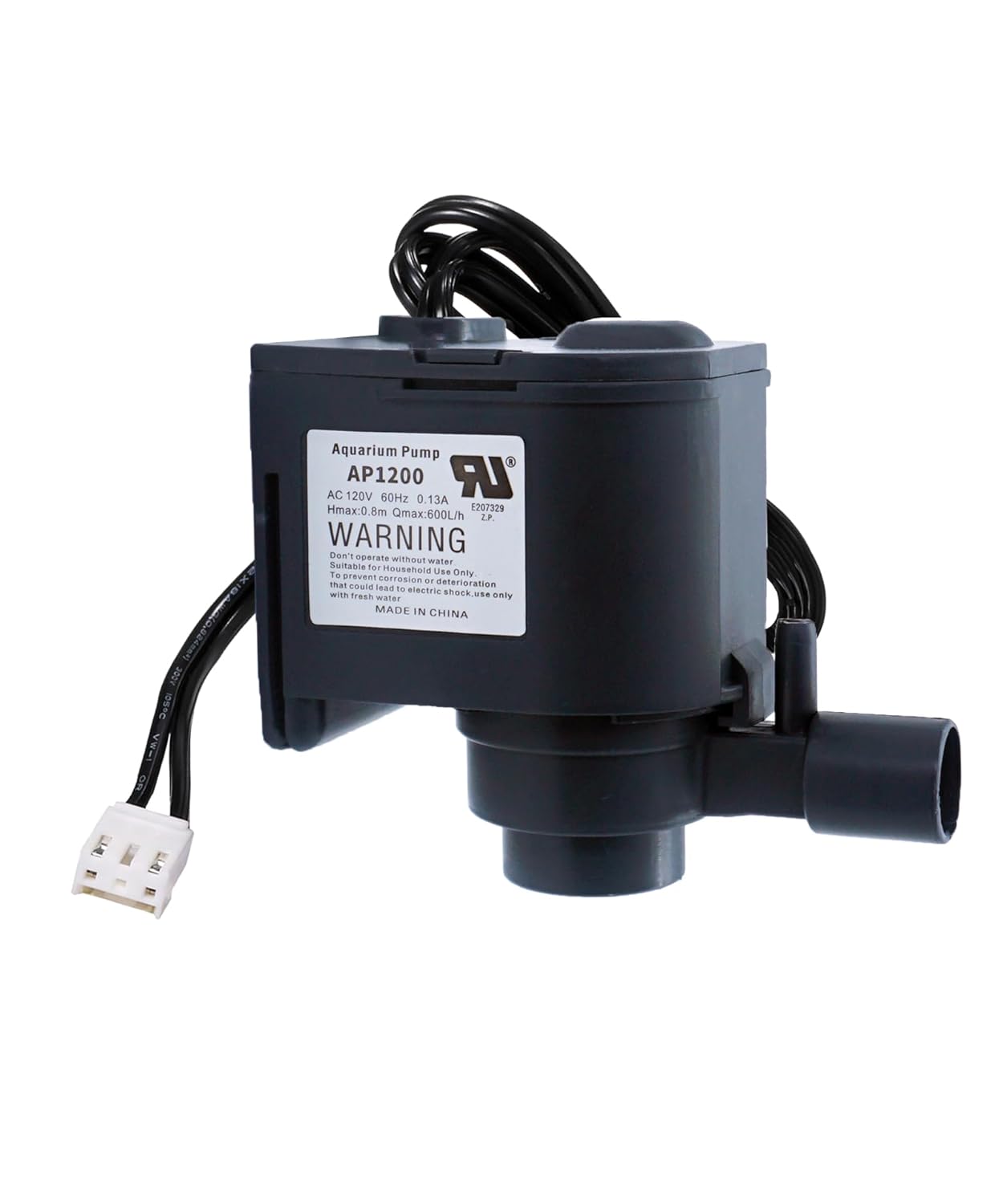 SIZE: 47x46x60mm Water Outlet Diameter: 15.5mm, Rated Voltage: AC 120V 60Hz 0.13A Hmax:0.8m Qmax:600L/h.