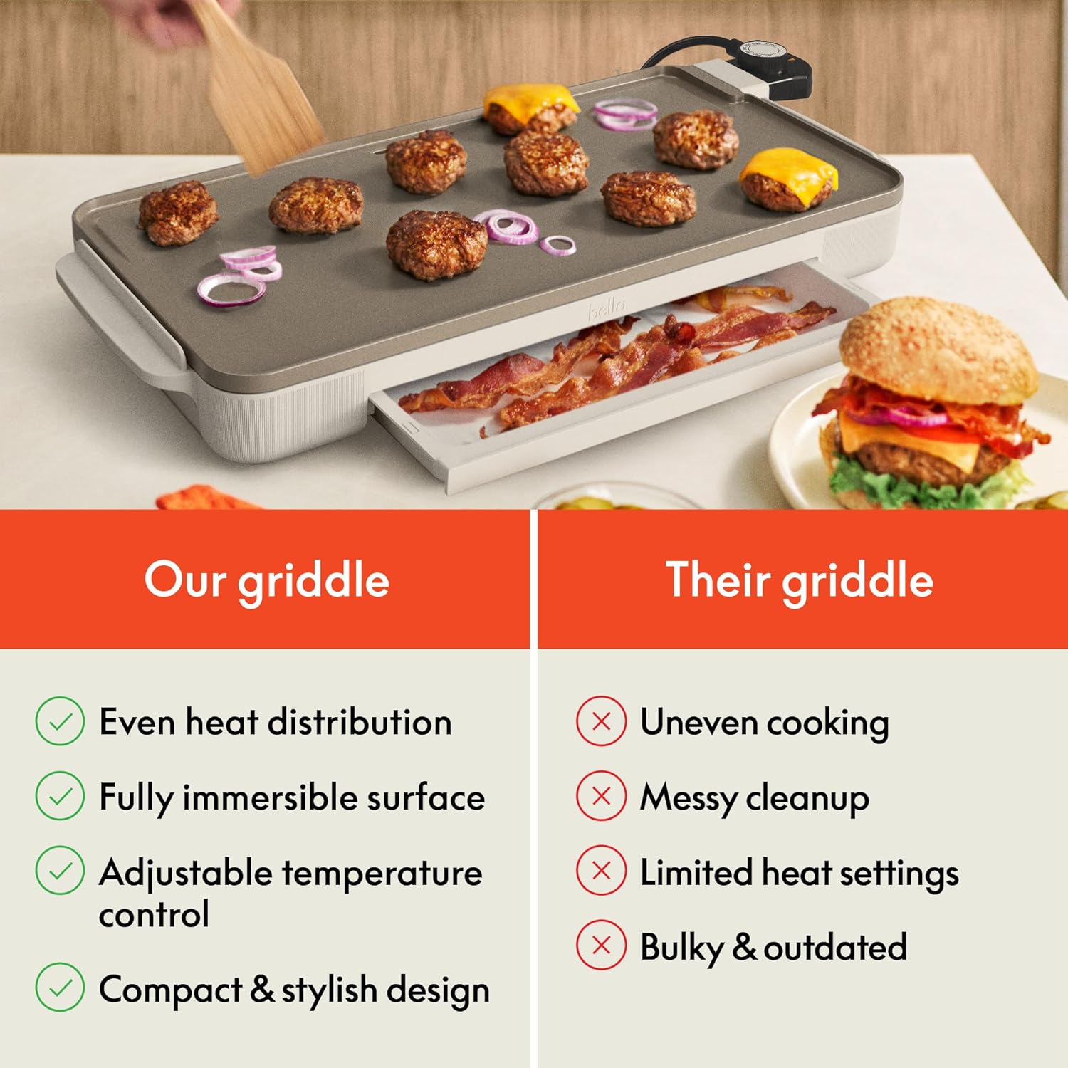 Buy bella 10″ x 20″ Electric Griddle with Warming Tray, EverGood™ Ceramic Nonstick Coating & Removable Temperature Probe, Dishwasher-Safe Drip Tray & Cool Touch Handles, 1500 Watt, Oatmilk online from amazon or ebay or walmart bella 10″ x 20″ Electric Griddle with Warming Tray, EverGood™ Ceramic Nonstick Coating & Removable Temperature Probe, Dishwasher-Safe Drip Tray & Cool Touch Handles, 1500 Watt, Oatmilk