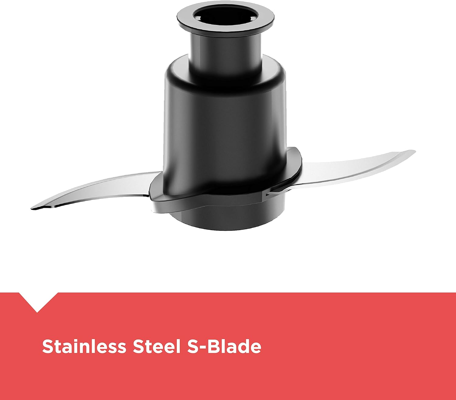 STAINLESS STEEL S-BLADE: The stainless steel blade quickly chops and mixes for fast, consistent results.
