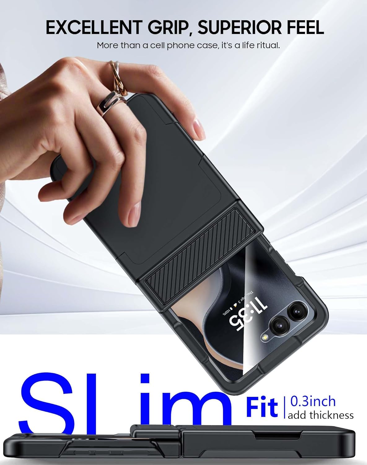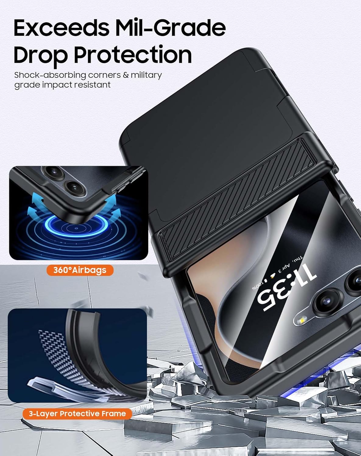 【Hassle-Free Full Hinge Protection】This Razr 2025/2024 Case is designed with a a rugged all-inclusive automatic hinge protection design. The newly upgraded hinge cover can provide comprehensive protection for your Razr 2025 from all angles, effectively protecting the fragile hinge from scratches or damage, let you say goodbye to expensive repair bills. Which not only fits seamlessly but also prevents dust build-up. Additional shockproof airbags cushions are built into the case, provides optimal drop protection