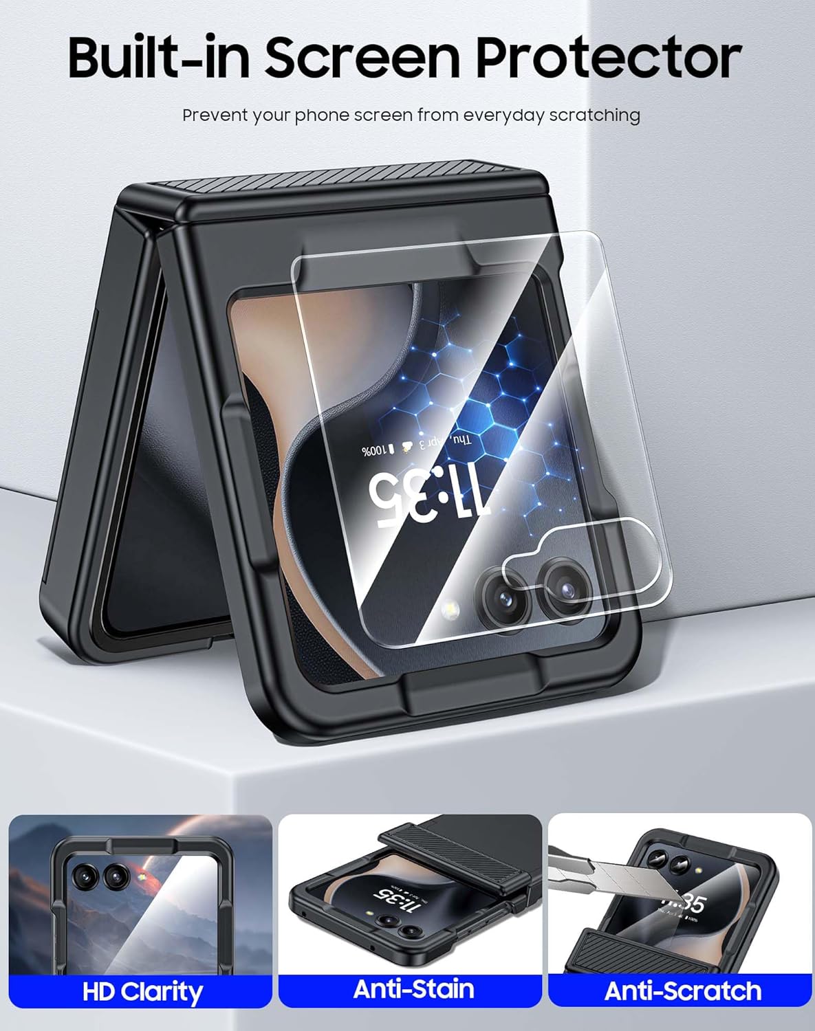 Built-in Screen Protector, Full Hinge Protection, Wallet Card Holder |