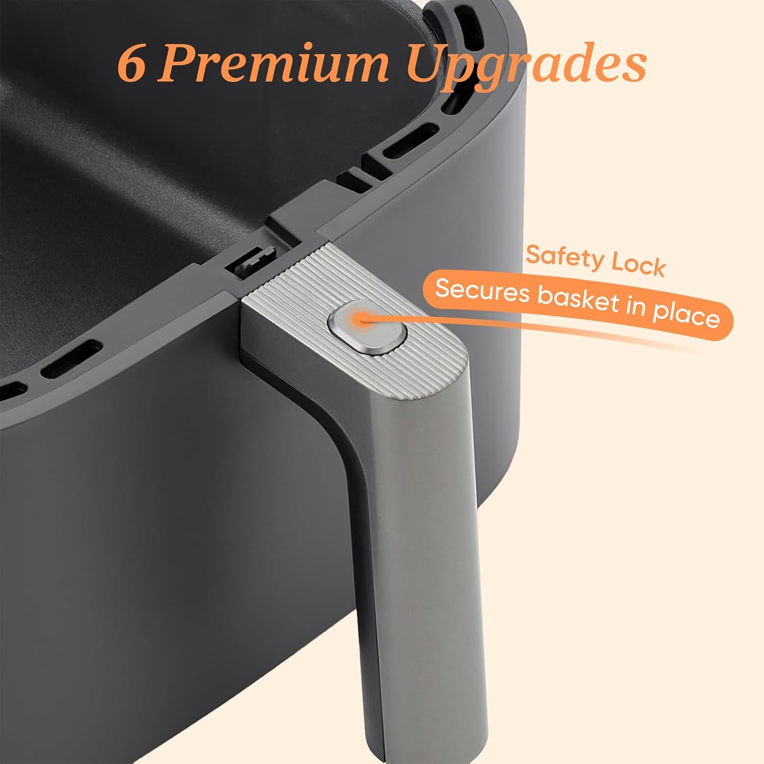 𝘾𝙖𝙥𝙖𝙘𝙞𝙩𝙮 𝙐𝙥𝙜𝙧𝙖𝙙𝙚: The 6-quart square basket offers a wide, deep design, great for the entire family meals while saving you space on your kitchen counter or cabinet