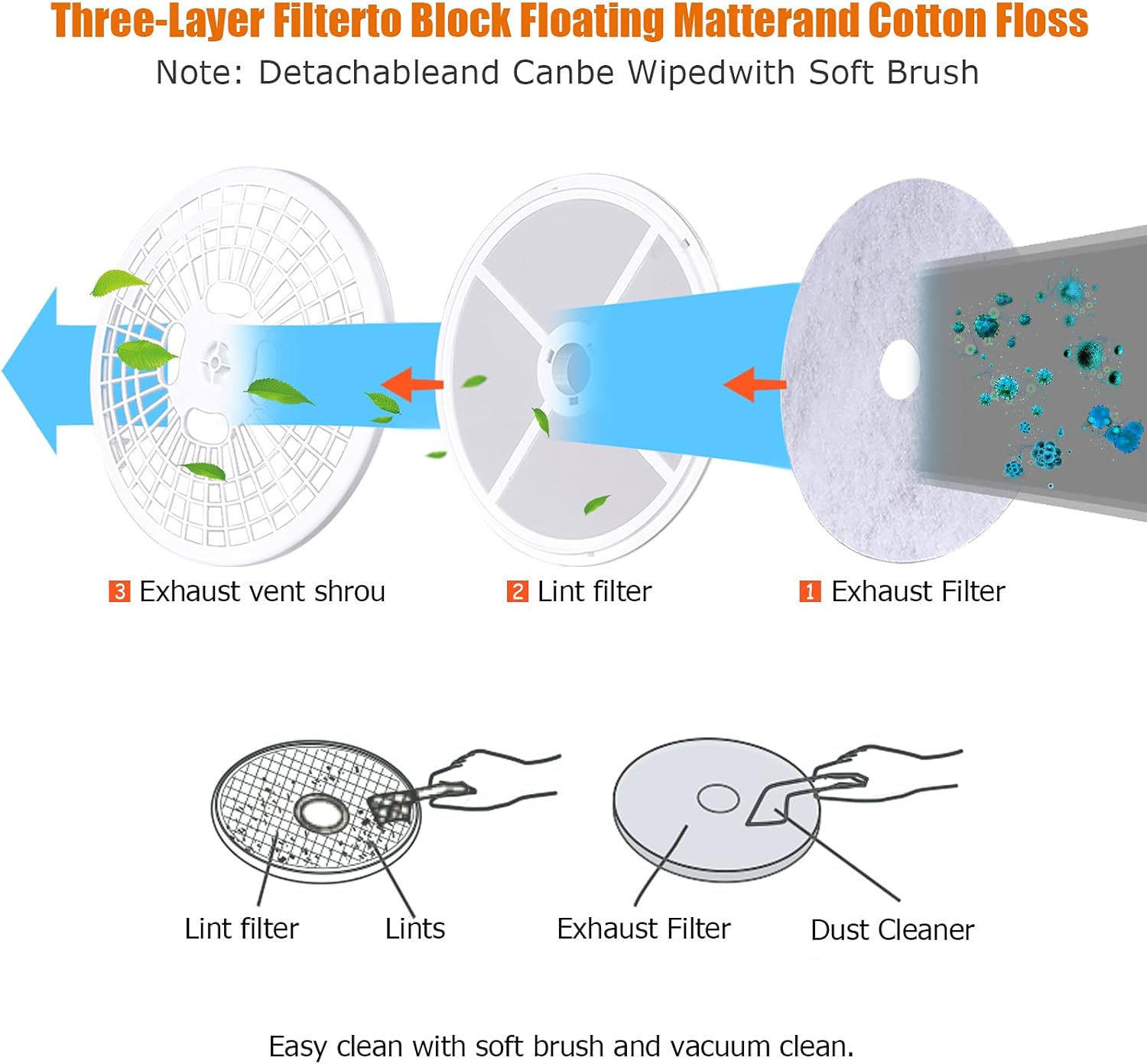 Multiple Filtering to Block Floating Matter and Cotton Floss. Note: Detachable and Can Be Wiped with Soft Brush.