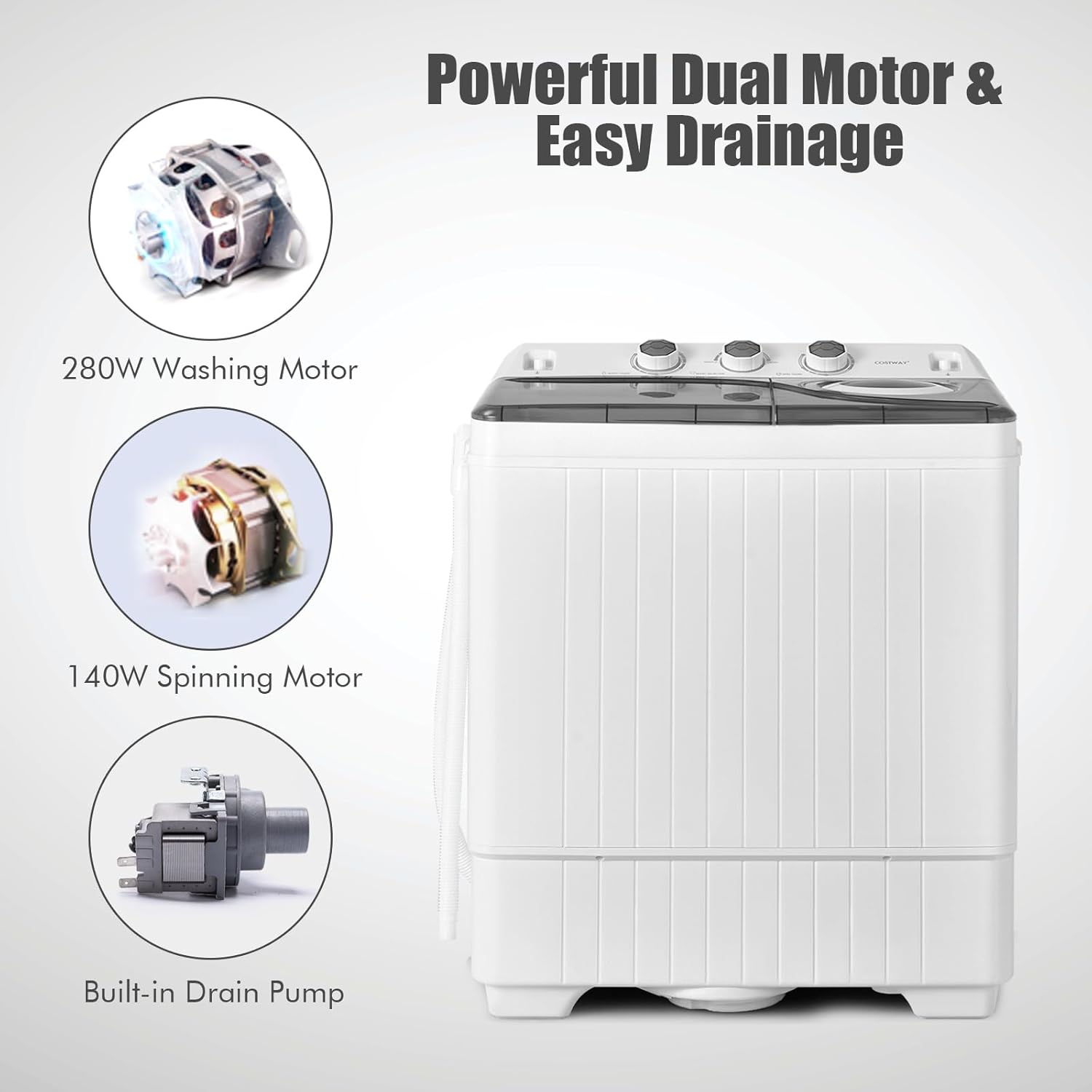 Buy COSTWAY Portable Washing Machine, Twin Tub 26lbs Capacity Laundry, 18lbs Washer and 8lbs Spinner Combo with Timer Knobs, Built-in Drain Pump, Compact Washer for Home Dorm Apartment (Grey+White) online from amazon or ebay or walmart COSTWAY Portable Washing Machine, Twin Tub 26lbs Capacity Laundry, 18lbs Washer and 8lbs Spinner Combo with Timer Knobs, Built-in Drain Pump, Compact Washer for Home Dorm Apartment (Grey+White)