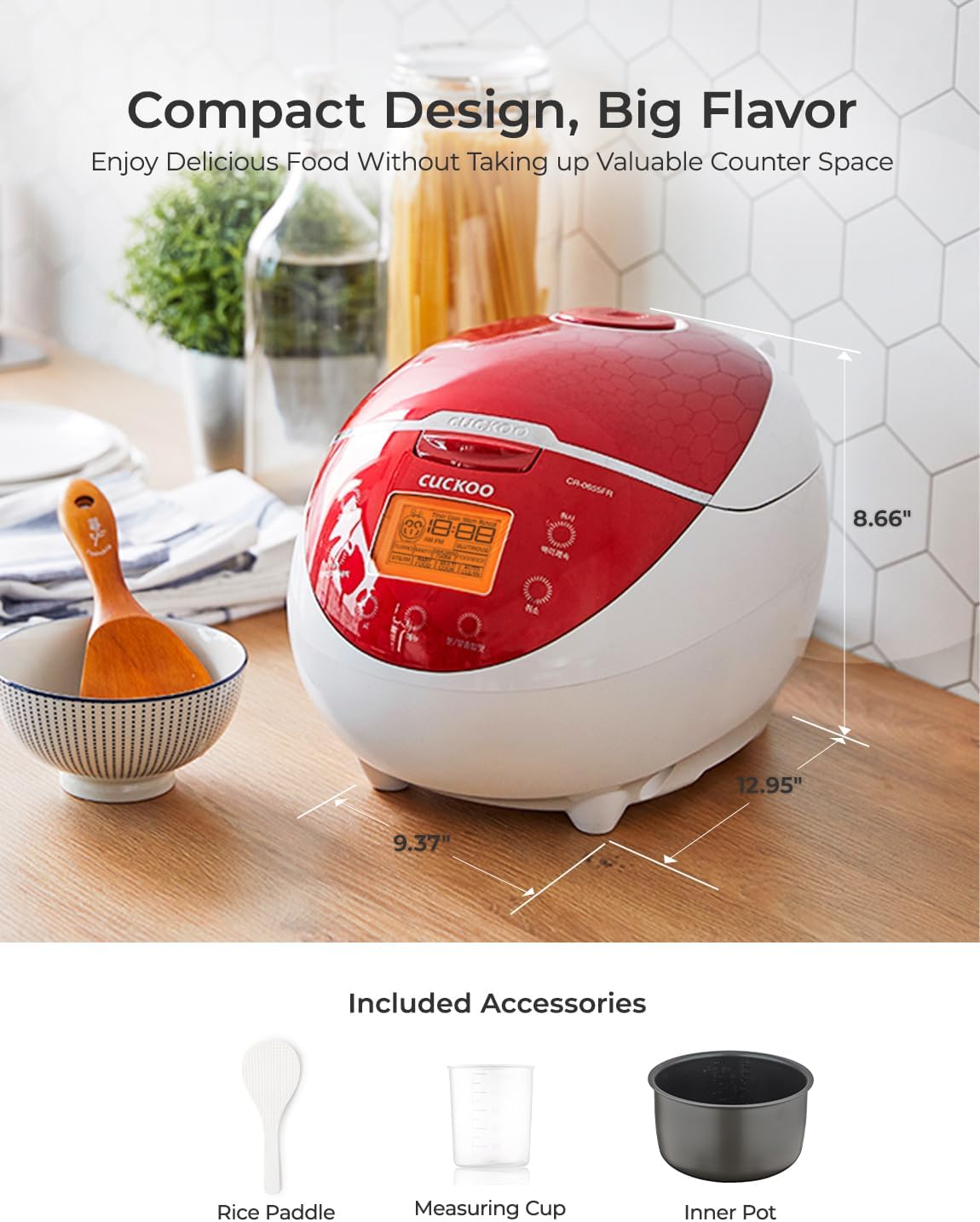 Buy CUCKOO Micom Rice Cooker 6 Cup Uncooked / 12 Cup Cooked, Fuzzy Logic Rice Maker with Delay Timer & Keep Warm Setting, Versatile Food Steamer for Cooking, Non-Stick Inner Pot, Red (CR-0655F) online from amazon or ebay or walmart CUCKOO Micom Rice Cooker 6 Cup Uncooked / 12 Cup Cooked, Fuzzy Logic Rice Maker with Delay Timer & Keep Warm Setting, Versatile Food Steamer for Cooking, Non-Stick Inner Pot, Red (CR-0655F)