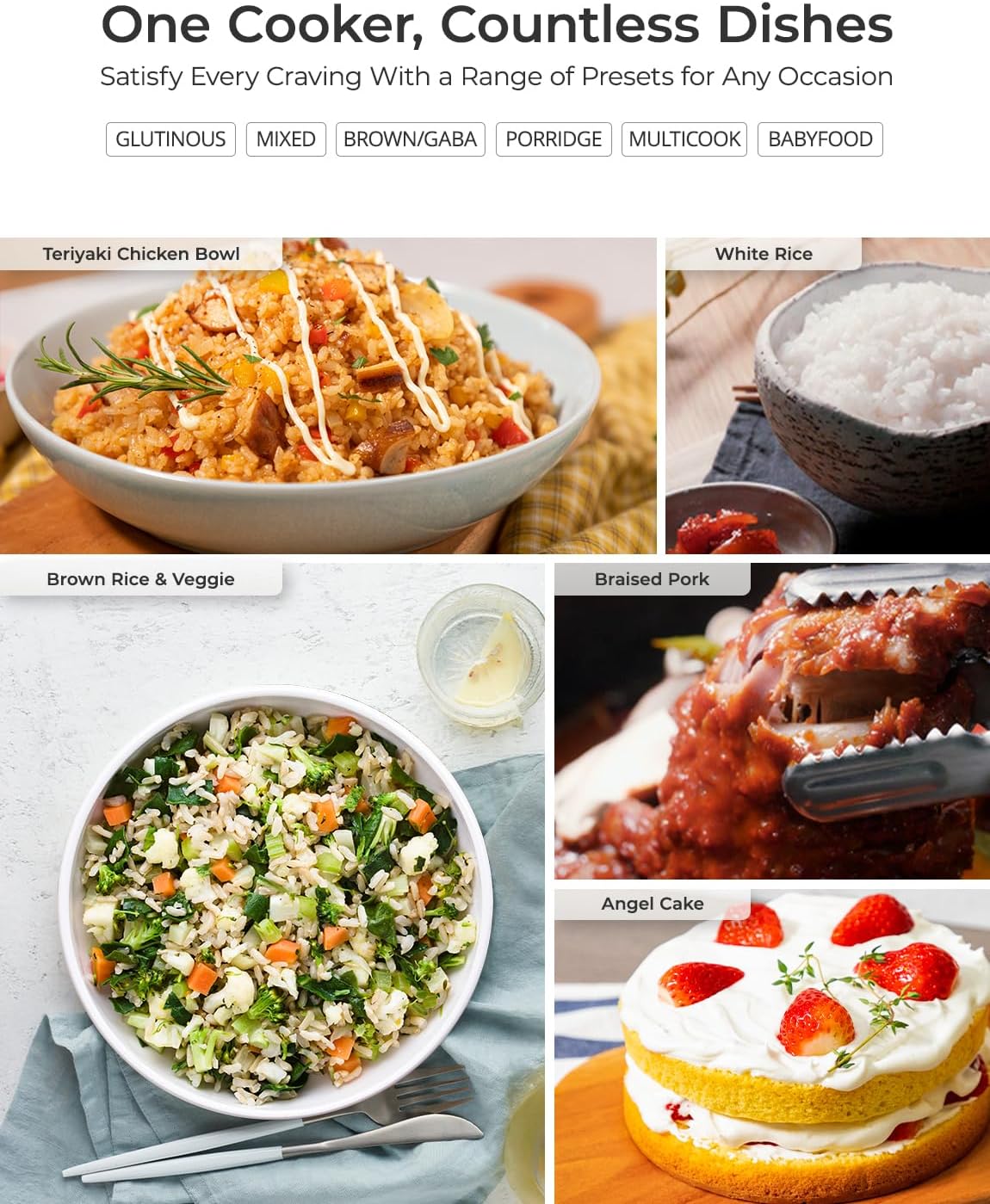 9 Multi-Functional Options: Enjoy and explore popular menu options such as white (glutinous) rice, brown rice, and porridge as well as steam and multi-cook to prepare soups, stews, and more!