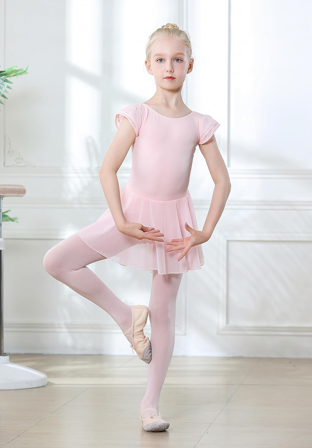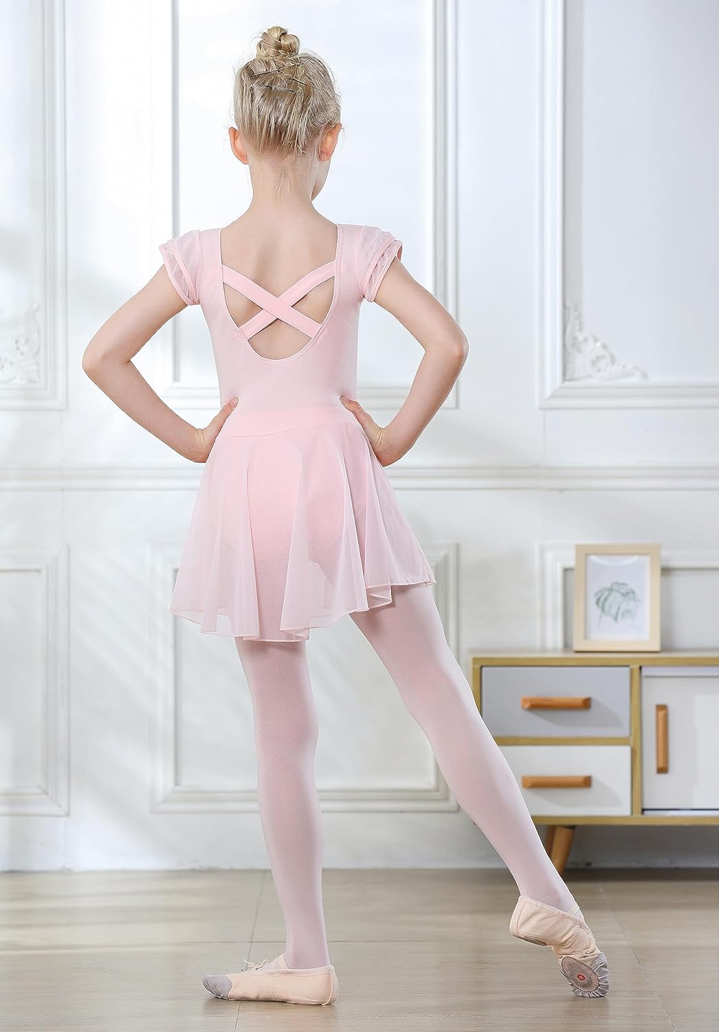 DIPUG Ballet Leotards for Girls Ballet Leotard with Skirt Toddler Dance Leotards Flutter Sleeve and Criss-Cross Back