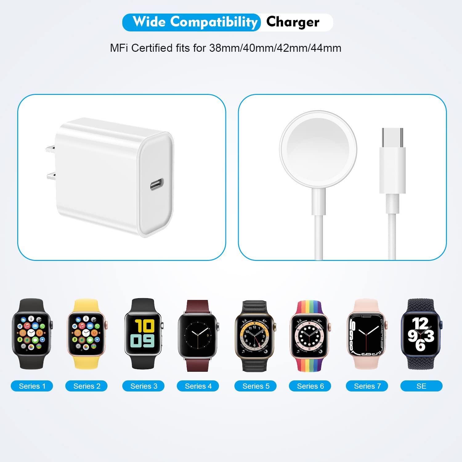 6.6FT Apple Watch Charger Cable for Apple Watch come with 20W USB C Wall Apple iPhone Watch Charger Travel Plug Adapter