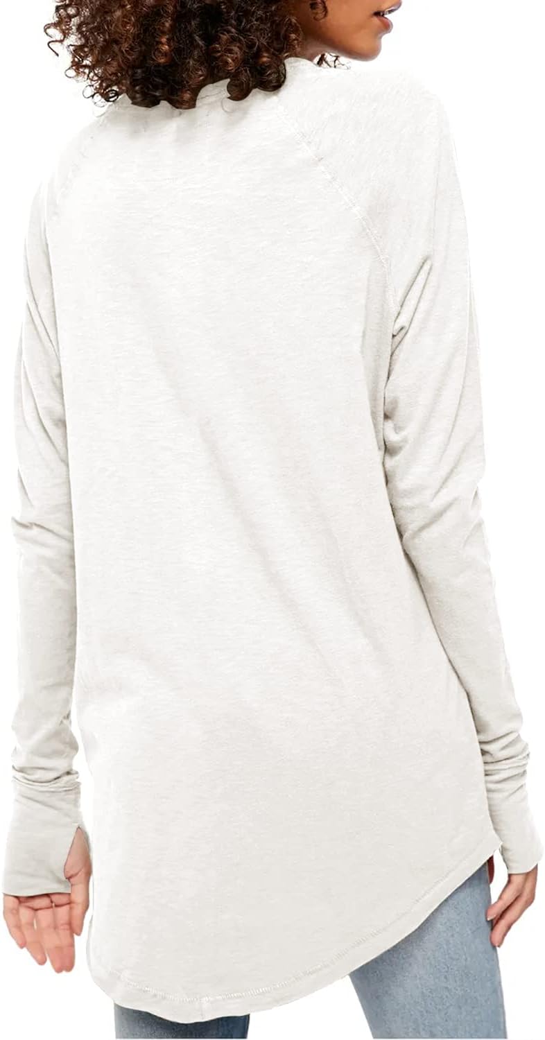 Fisoew Women’s Casual Long Sleeve Tops Crew Neck Round Hem Loose T-Shirts Tunic Tops with Thumb Holes