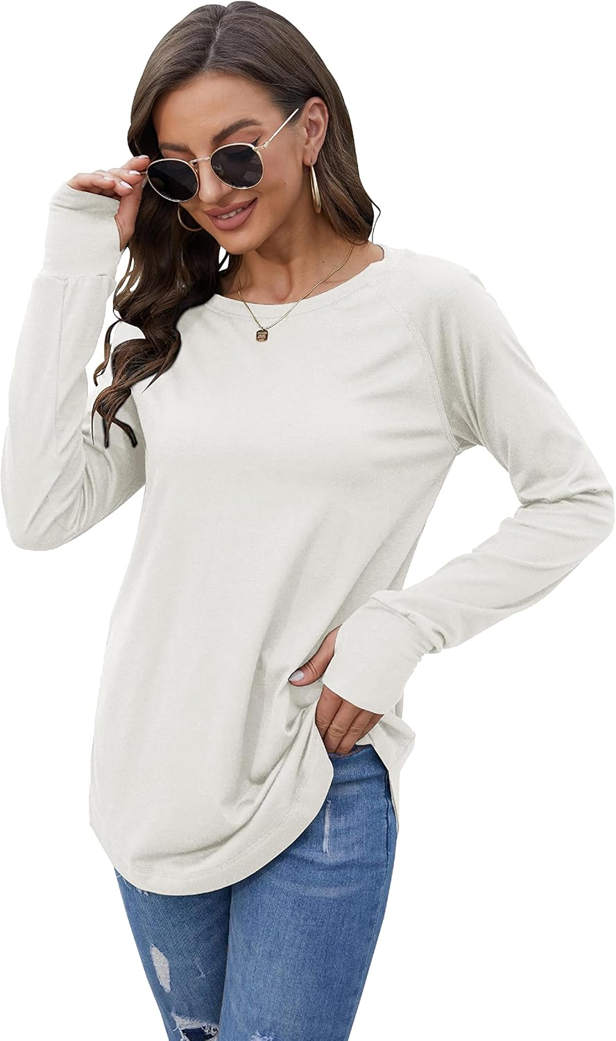 Buy Fisoew Women’s Casual Long Sleeve Tops Crew Neck Round Hem Loose T-Shirts Tunic Tops with Thumb Holes online from amazon or ebay or walmart Fisoew Women’s Casual Long Sleeve Tops Crew Neck Round Hem Loose T-Shirts Tunic Tops with Thumb Holes
