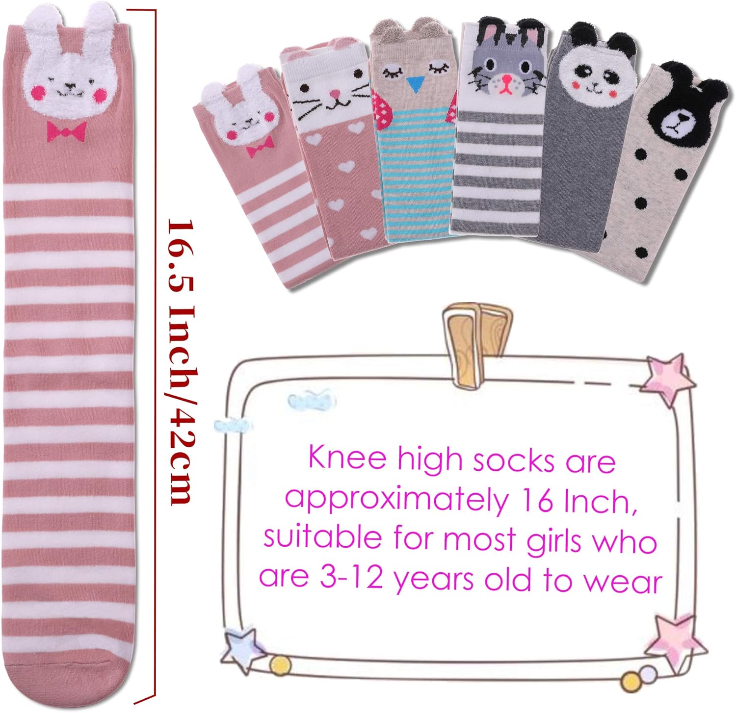 FNOVCO Girls Knee High Socks Kids Crazy Fun Gift Cute Animal Patterns Cotton Long Socks 6 Pairs