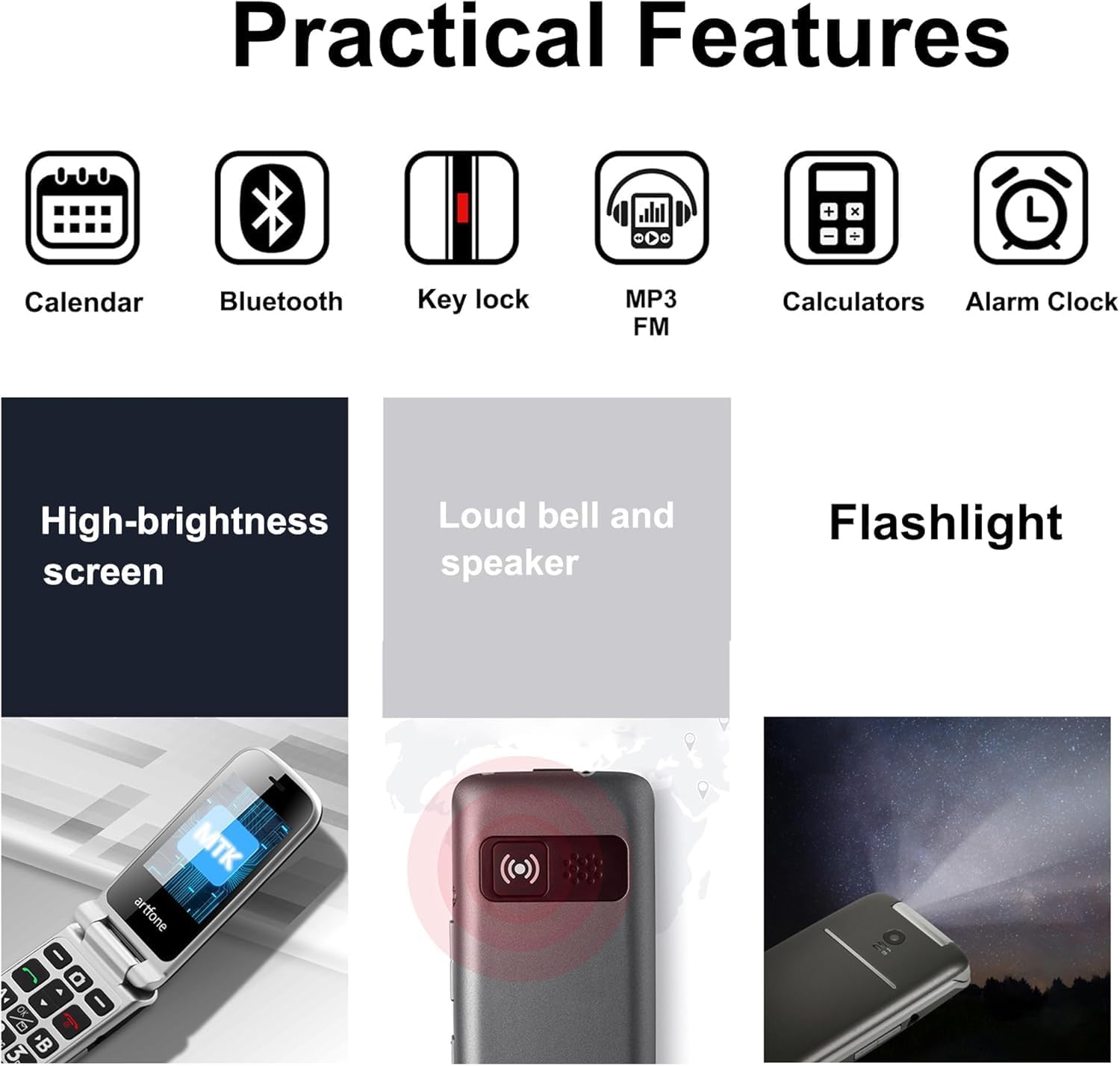 Artfone G3 from All Angles: Unlocked Flip Phone Designed for Elderly People