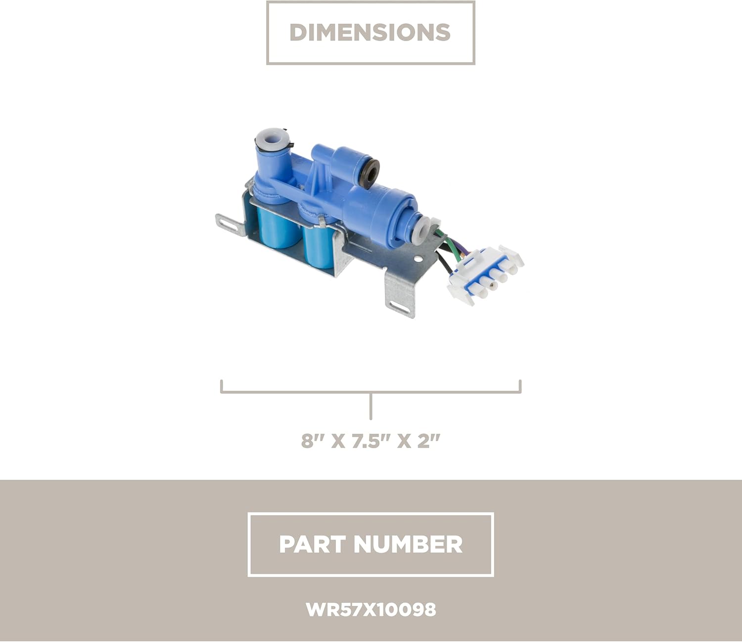 Refrigerator Water Inlet Valve (part number WR57X10098) is a Genuine GE replacement part. For more than 100 years, GE Appliances has been a trusted brand, synonymous with quality and reliability. To continue earning your trust, our appliances and parts are engineered to precise specifications and subjected to rigorous testing. Behind every GE Appliances product is the work of thousands of dedicated Americans committed to excellence as well as a better future for our communities and our environment.