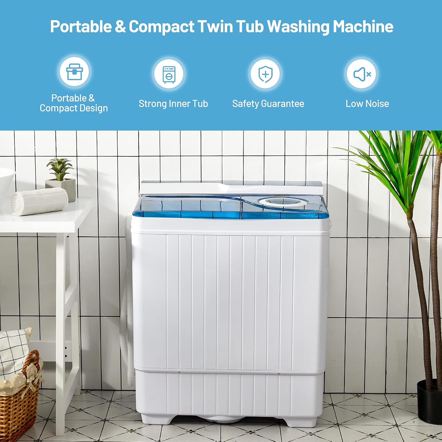 [2-in-1 Design for Convenience]: Our practical washing machine comes with two tubs, which means you can make different settings for washing and spinning. Besides, the washing and dehydration function can be used simultaneously, providing much convenience for your daily use. This 2-in-1 machine saves space and money for an extra dehydrator.