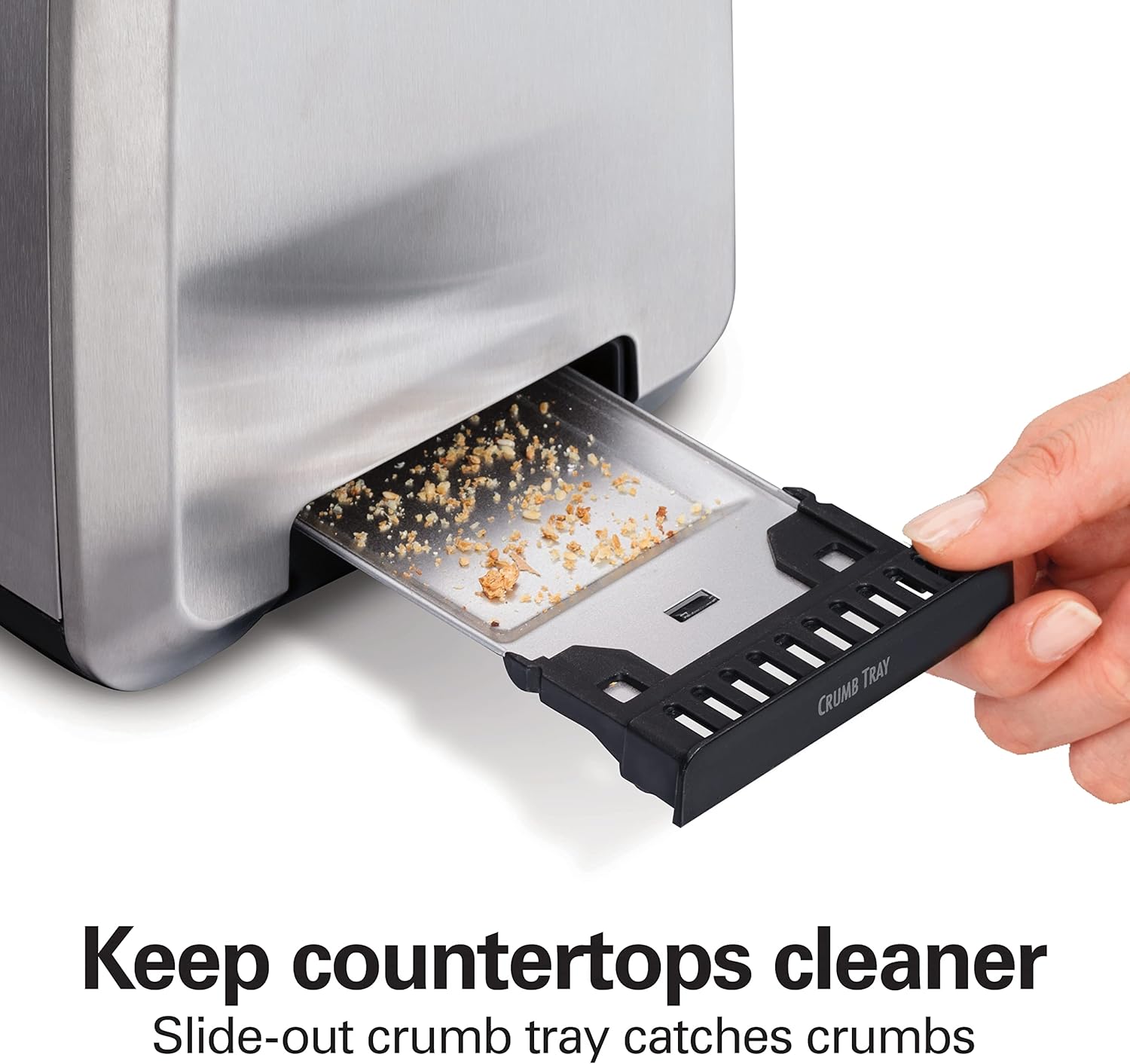 Hamilton Beach 2 Slice Toaster with Extra-Wide Slots, Bagel Setting, Toast Boost, Slide-Out Crumb Tray, Auto-Shutoff & Cancel Button, Defrost Function, Stainless Steel (22794)