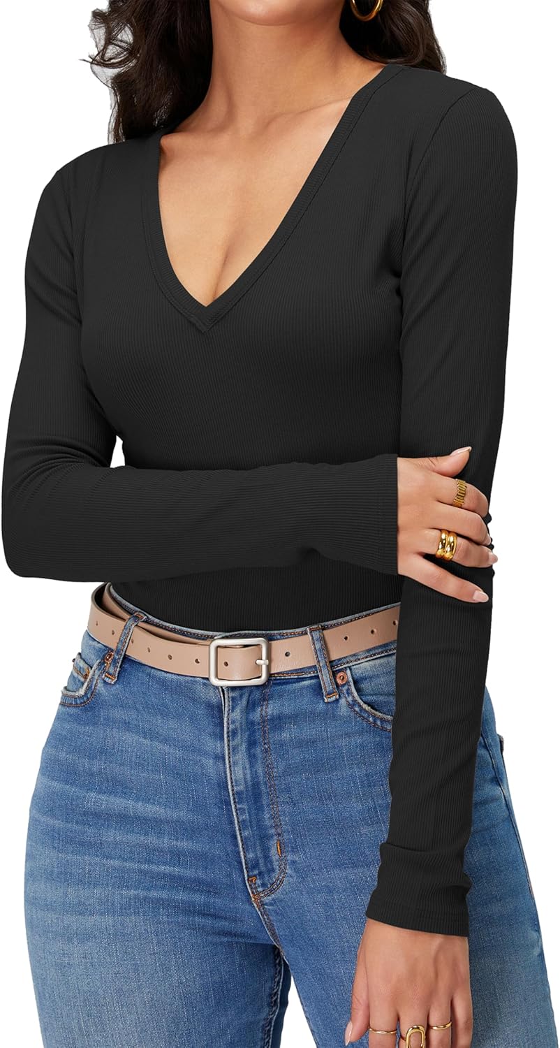 Design – Long Sleeve/Deep V neck/Knit/Tight/Solid color