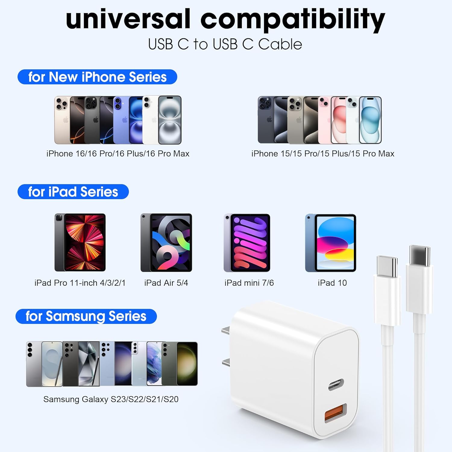 Buy iPhone 17 16 15 Charger Fast Charging,20W USB C Wall Charger Block with 6ft Type C to C Cable Cord for Apple iPhone 17/17 Pro/17 Pro Max/17 Air/16/16 Plus/16 Pro/16 Pro Max/15/15 Pro Max/iPad Pro/Mini online from amazon or ebay or walmart iPhone 17 16 15 Charger Fast Charging,20W USB C Wall Charger Block with 6ft Type C to C Cable Cord for Apple iPhone 17/17 Pro/17 Pro Max/17 Air/16/16 Plus/16 Pro/16 Pro Max/15/15 Pro Max/iPad Pro/Mini