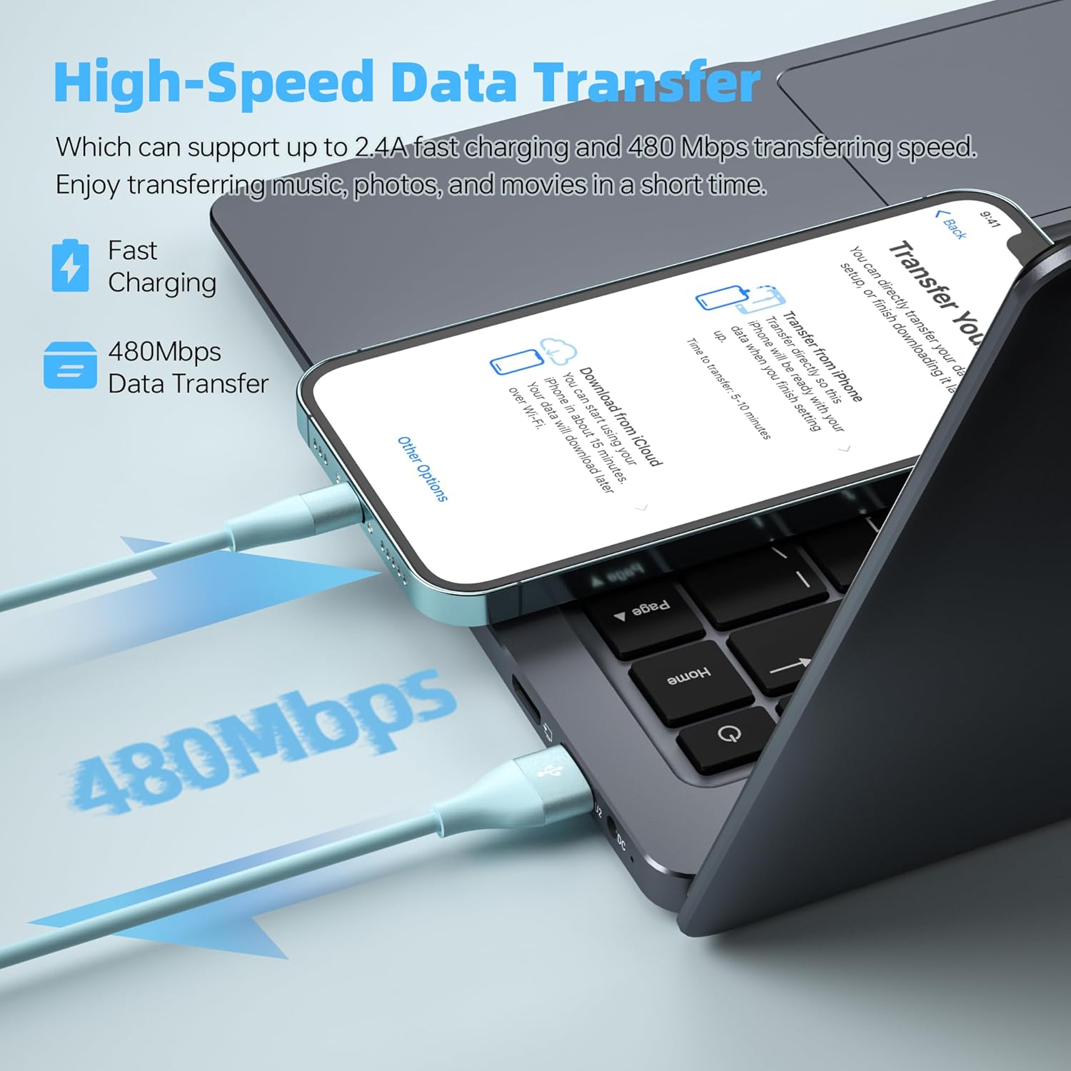 To increase charging speed, high-quality four-core copper wire is used internally. Your device can charge at 2.4 amps and transfer files at 480Mbps.