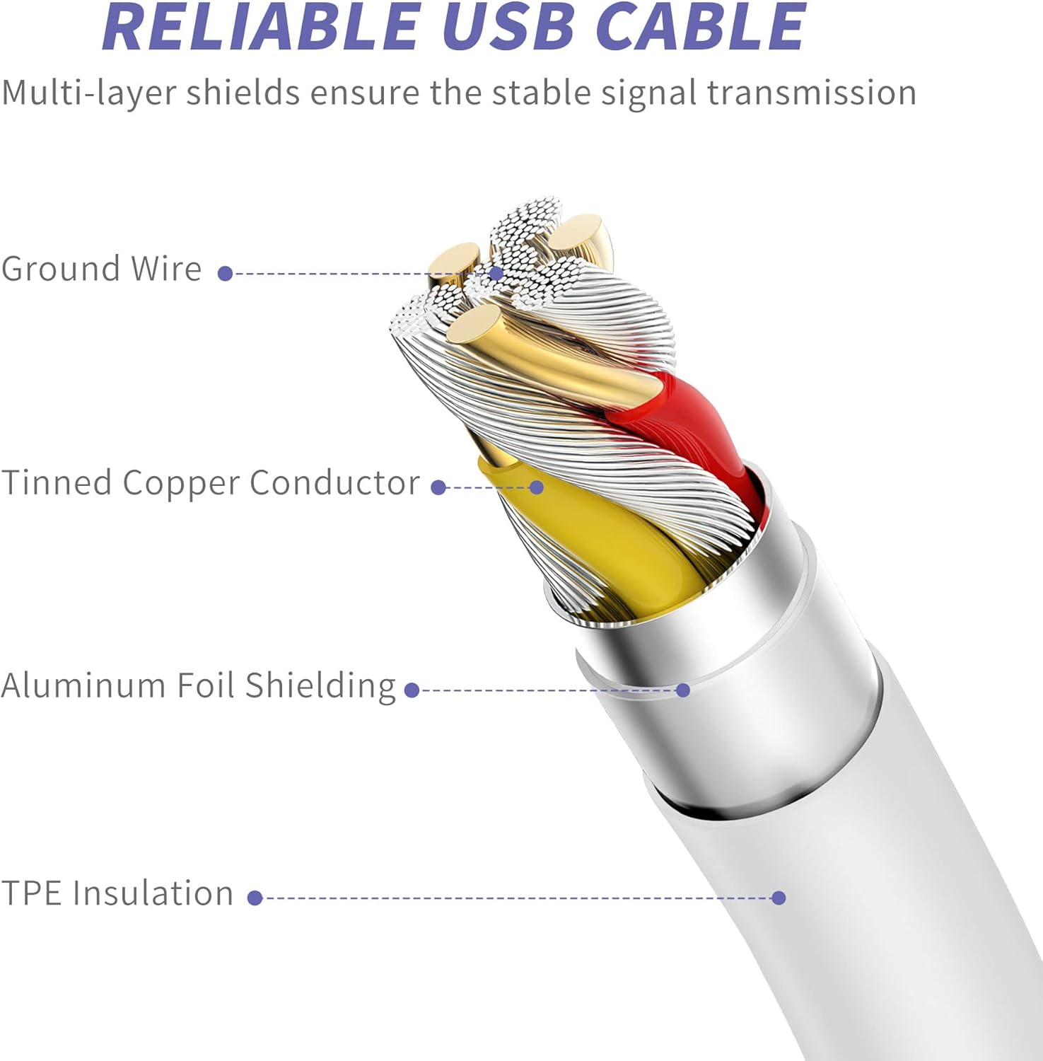 The interior of the cable is made of high-quality copper for durability.