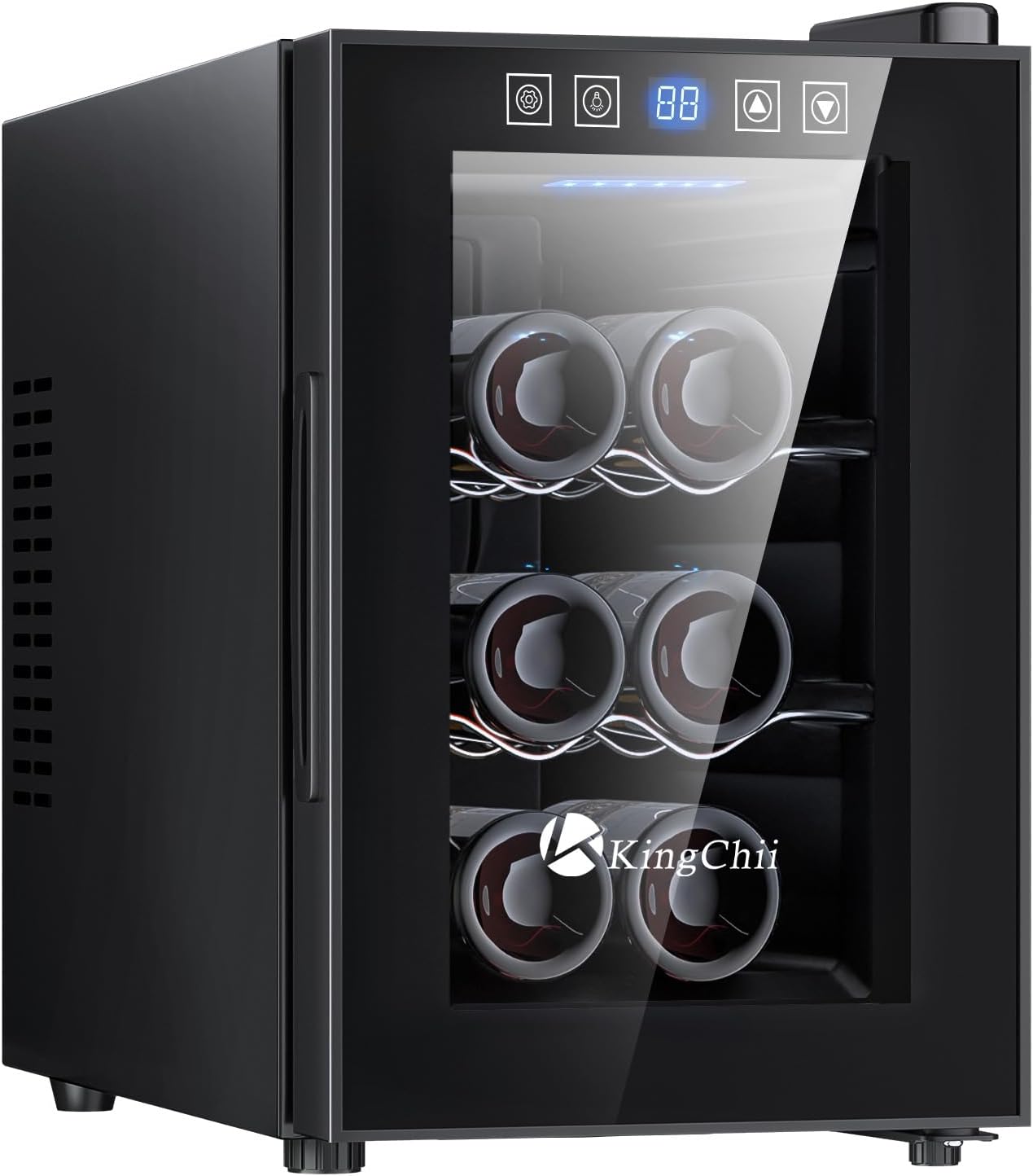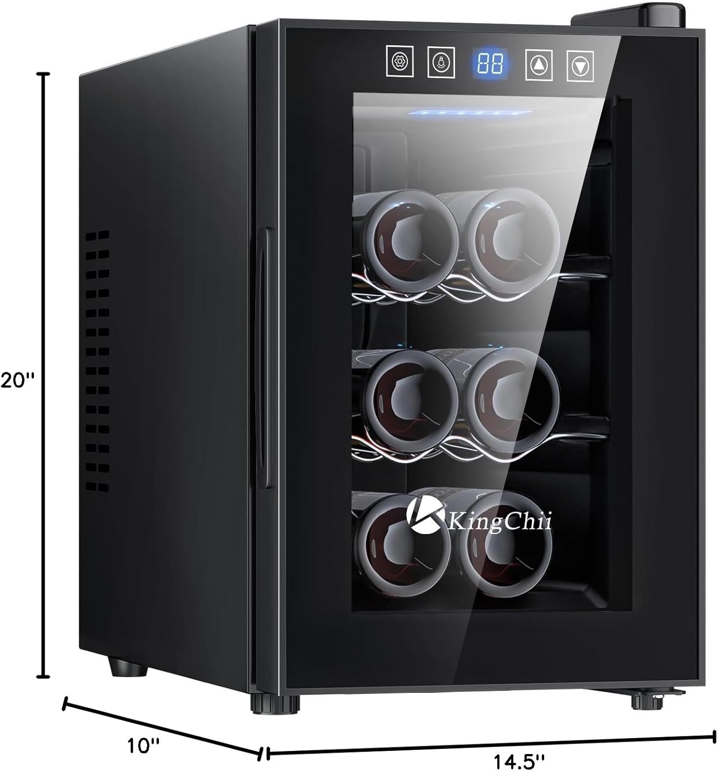 Buy KingChii 6 Bottle Thermoelectric Wine Cooler Refrigerator Advanced Cooling Technology, Stainless Steel & Tempered Glass For Red Wine, Champagne for Home, Kitchen, or Office online from amazon or ebay or walmart KingChii 6 Bottle Thermoelectric Wine Cooler Refrigerator Advanced Cooling Technology, Stainless Steel & Tempered Glass For Red Wine, Champagne for Home, Kitchen, or Office