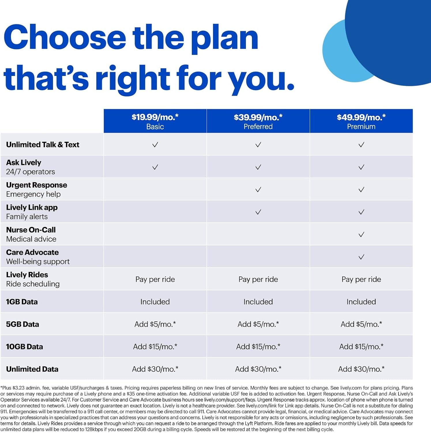 Only Compatible with Lively Phone Service: The Jitterbug Smart4 is only compatible with Lively phone service; plans include unlimited talk, text and 24/7 access to Lively’s caring team