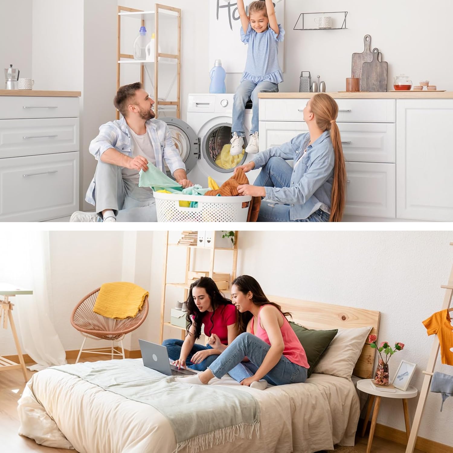 【2kg Capacity】 Heavy things must be wrung out slightly so as not to exceed weight limit. Usually, it can hold 4 ~ 6 spring and summer clothes and 1 ~ 3 autumn and winter clothes. It can hold 6 T-shirts/1 sweater of adults/1 coat of adults/2 pairs of jeans of adults/2 bath towel. The amount of clothes it can hold all depends on the size and the material of the items.