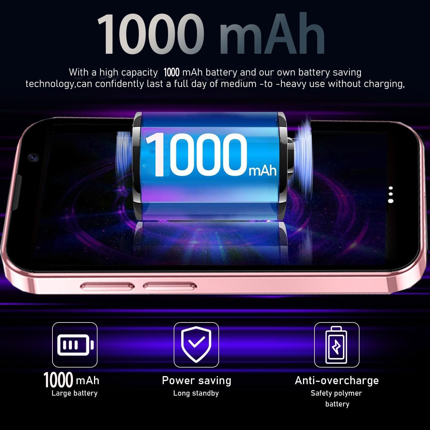 🤳【Smarttphone with 1000mAh Battery】-The battery capacity of this smartphone is 2000mAh. It also supports voice calls, video calls, photography, recording, email, MP3, GPRS, FM radio, touch screen, GPS navigation, messaging, SMS, MMS, video player, memory card insertion trough, internet browser, Google Maps, etc.