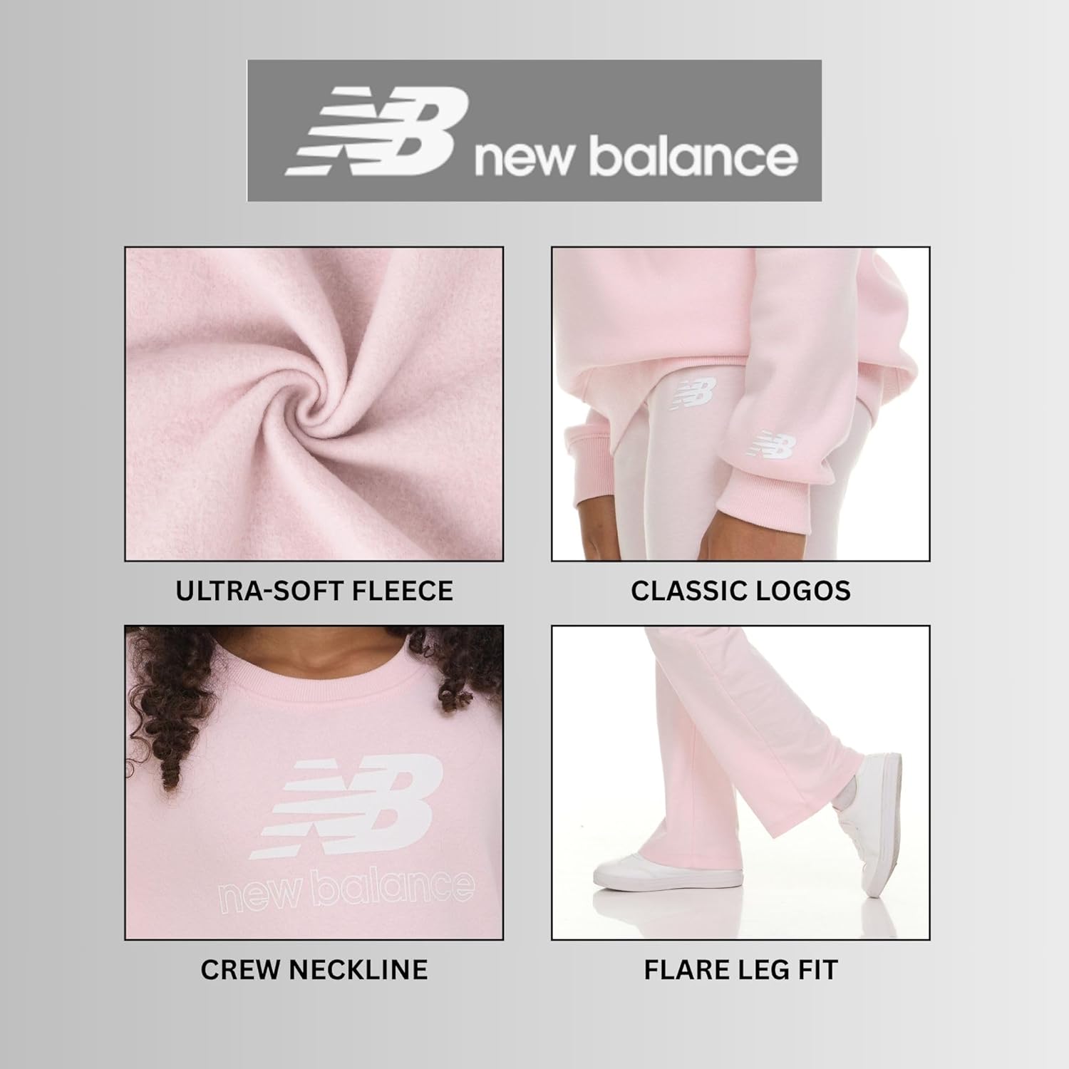Buy New Balance Girls 2 Piece Set – Crewneck Sweatshirt & Flared Leggings Set, Soft Cotton Blended Fleece Premium Activewear online from amazon or ebay or walmart New Balance Girls 2 Piece Set – Crewneck Sweatshirt & Flared Leggings Set, Soft Cotton Blended Fleece Premium Activewear