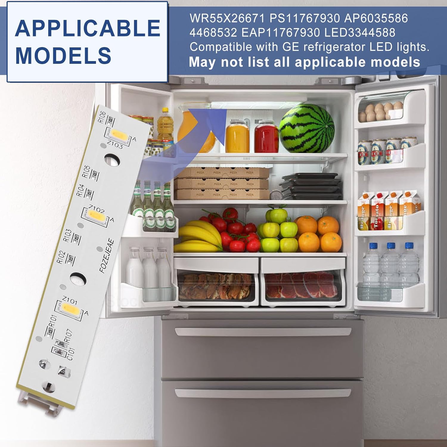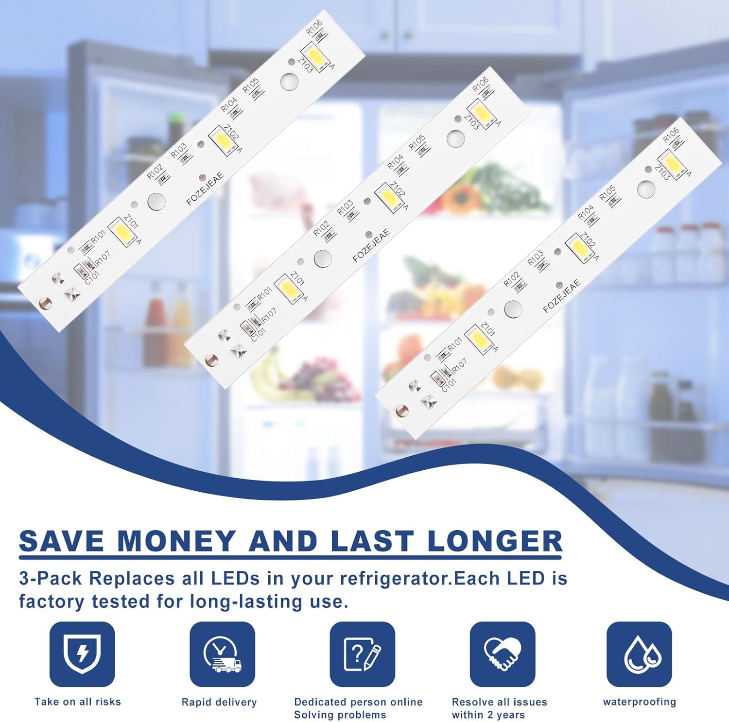 【Value 3-Pack】 Comes with 3 premium WR55X26671 LED panels, ideal for full replacements or keeping extras on hand. A smart, cost-effective choice to keep your fridge lighting in top condition without calling a technician. Provide two years warranty.LED refrigerator bulb, if there is any quality problem during the warranty period, please contact Fozejeae in time, we will solve the problem within 8 hours. Customer satisfaction is our relentless pursuit.