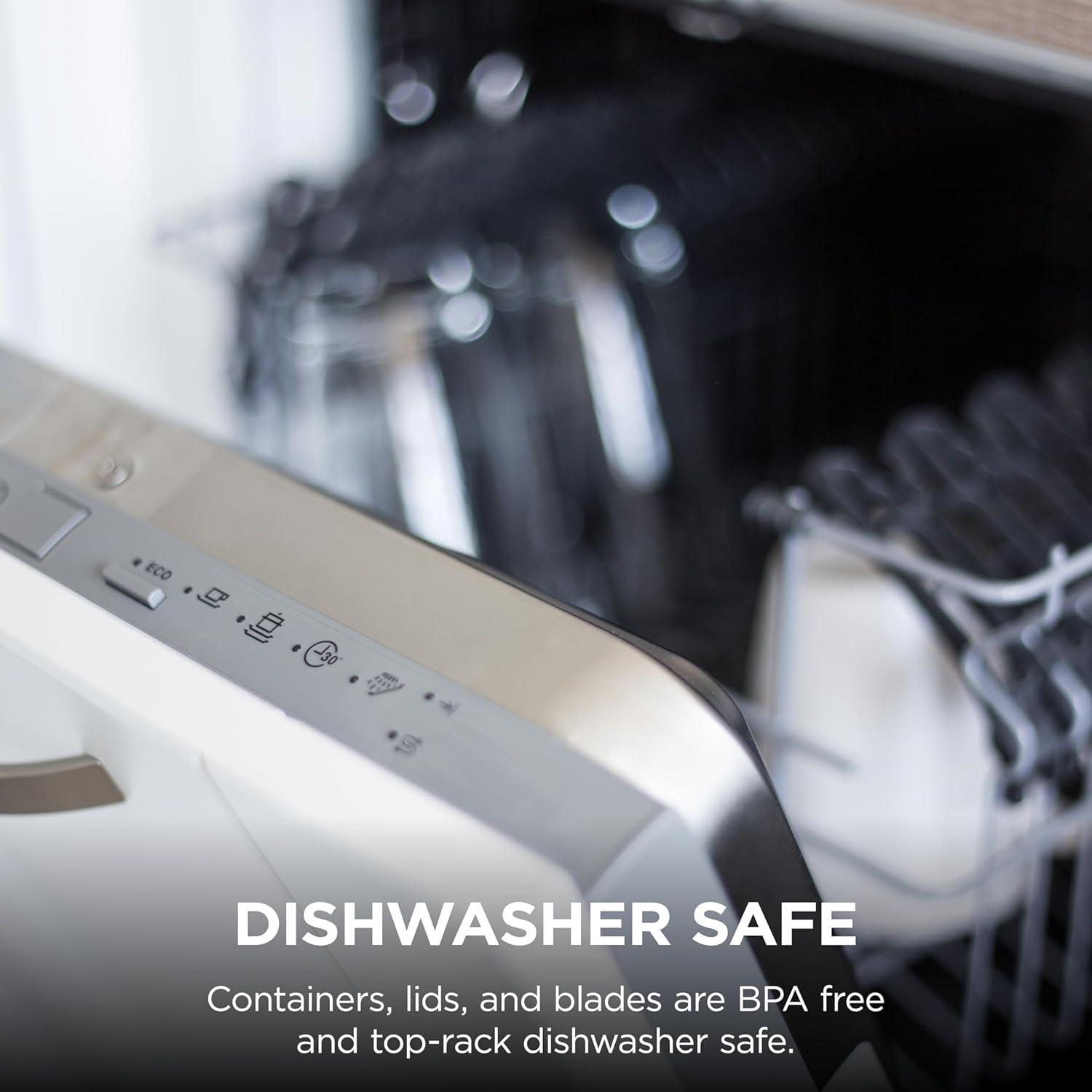 DISHWASHER SAFE PARTS: Containers, lids, discs, and blade assemblies are all dishwasher safe.