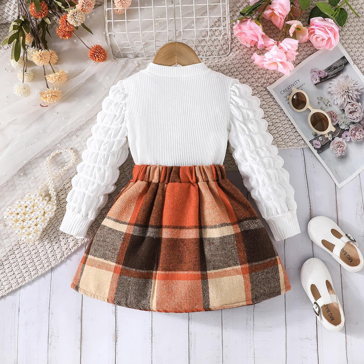 Buy Noubeau Toddler Girls Plaid Outfits Girls Puff Sleeve Knit Ribbed Shirt Tops Plaid Skirt Set Kids Fall Winter Clothes online from amazon or ebay or walmart Noubeau Toddler Girls Plaid Outfits Girls Puff Sleeve Knit Ribbed Shirt Tops Plaid Skirt Set Kids Fall Winter Clothes