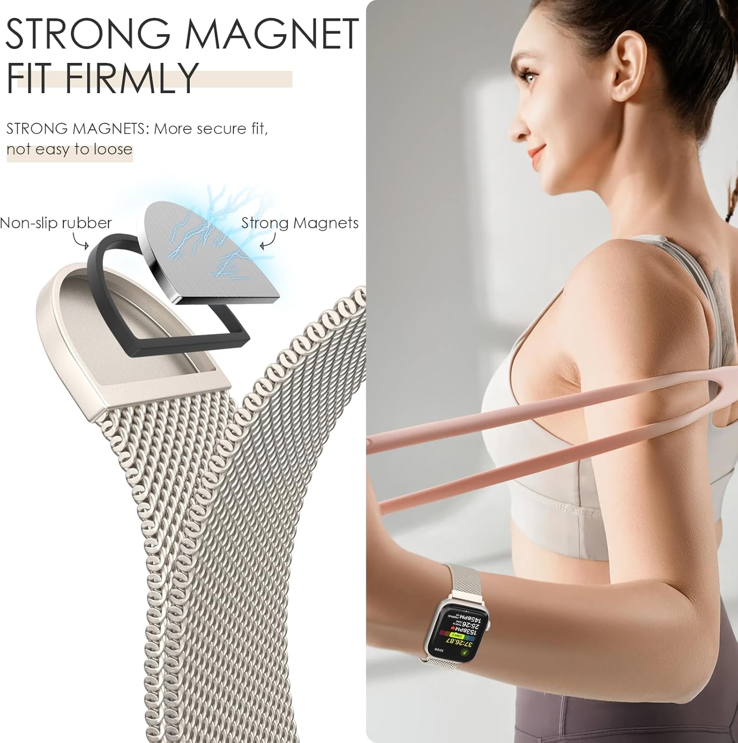 Secure Magnetic Closure – Features a strong built-in magnet for a perfect fit and easy adjustment, ensuring the band stays comfortably in place during workouts or daily wear. NOTICE:Please buy with caution if you have frequent contact with metal in your life,the magnet clasp will attract other metals