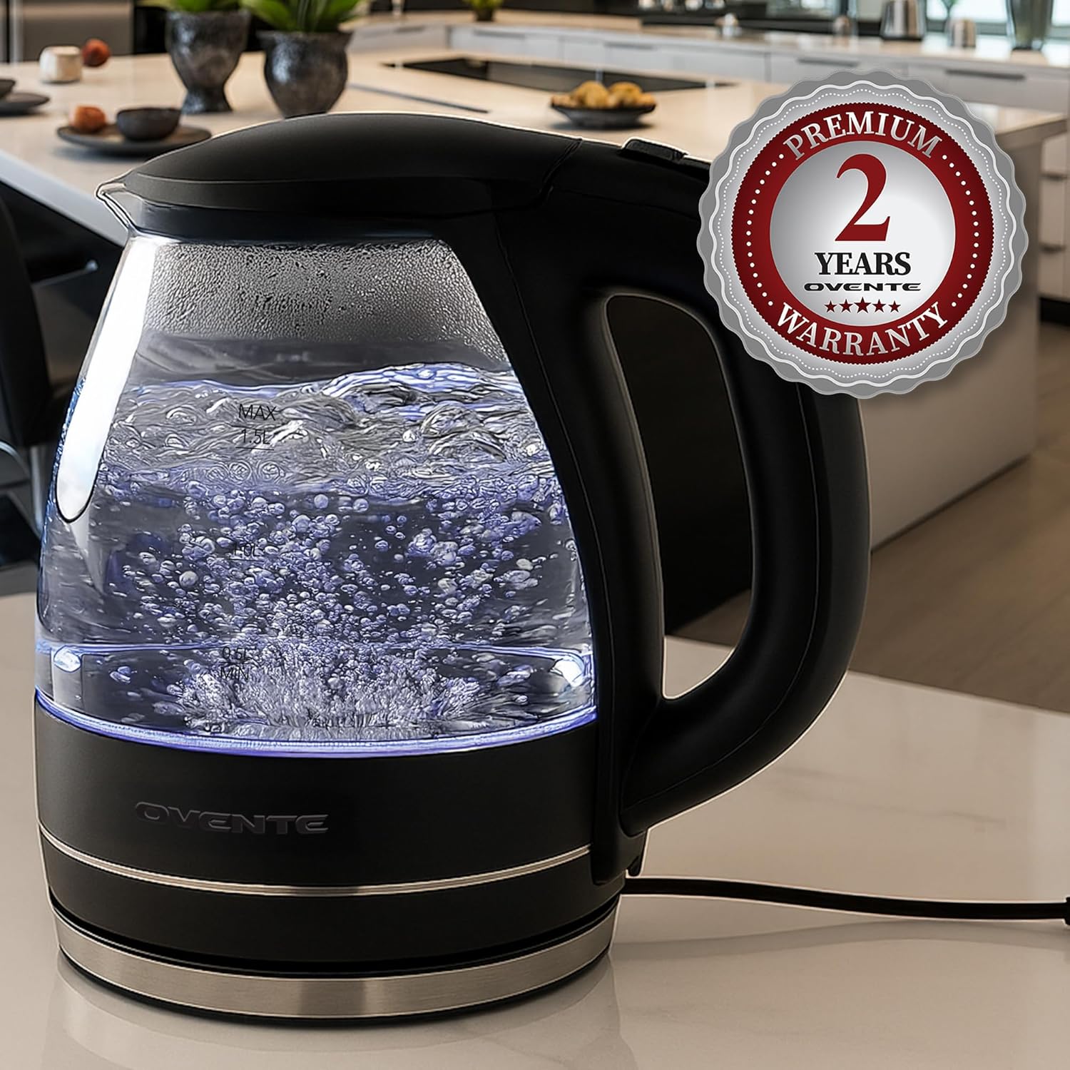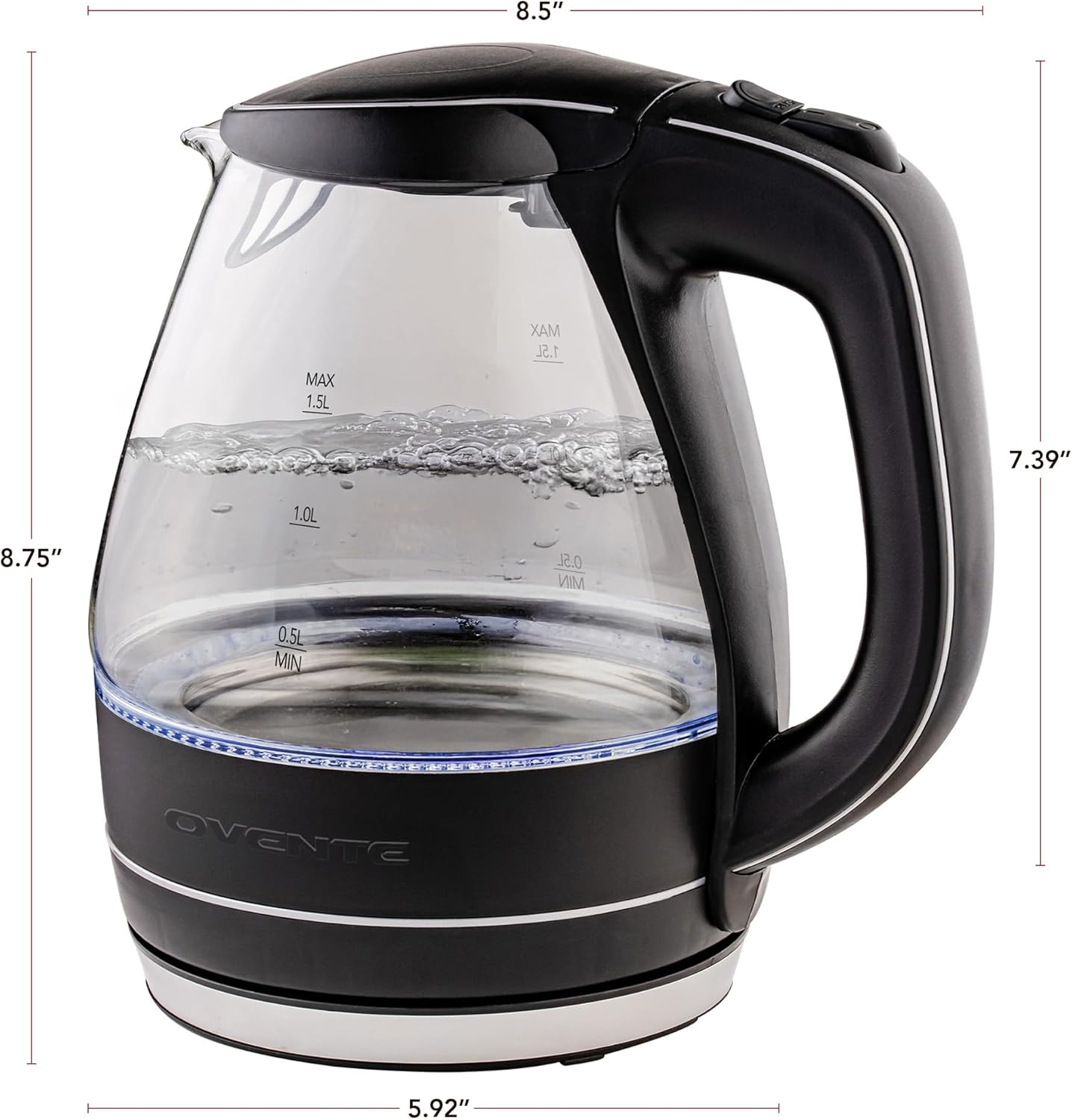 Buy OVENTE Electric Kettle, 1.5L Borosilicate Glass Countertop Water Heater and Boiler for Coffee or Tea, BPA-Free, Auto Shut-Off, Boil-Dry Protection, Removable and Washable Spout Filter, Black KG83B online from amazon or ebay or walmart OVENTE Electric Kettle, 1.5L Borosilicate Glass Countertop Water Heater and Boiler for Coffee or Tea, BPA-Free, Auto Shut-Off, Boil-Dry Protection, Removable and Washable Spout Filter, Black KG83B