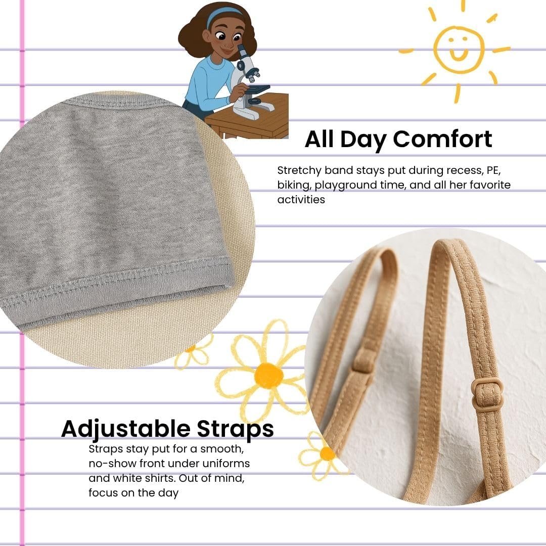 Popular Cotton Girls Training Bra – Crop Cami Training Bras for Girls with Adjustable Straps. Cotton Bra Pack.