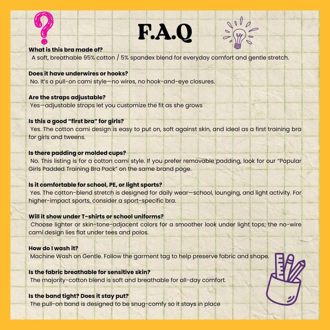 Buy Popular Cotton Girls Training Bra – Crop Cami Training Bras for Girls with Adjustable Straps. Cotton Bra Pack. online from amazon or ebay or walmart Popular Cotton Girls Training Bra – Crop Cami Training Bras for Girls with Adjustable Straps. Cotton Bra Pack.
