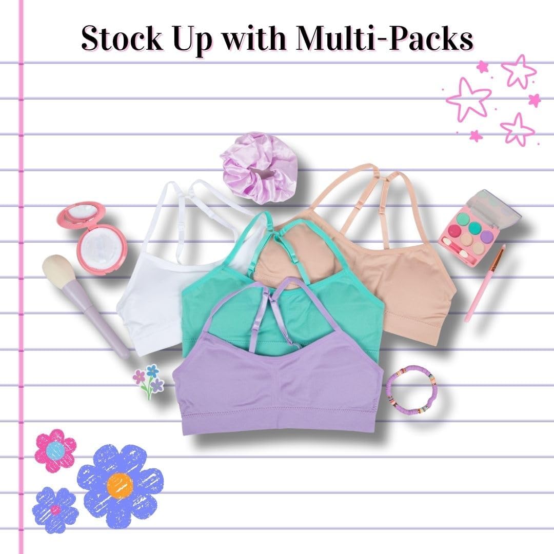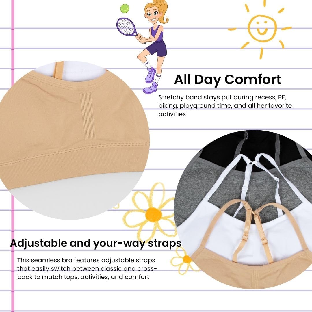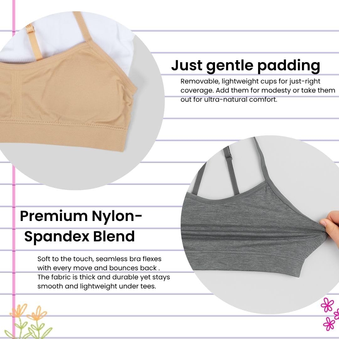 Popular Girls Padded Training Bra Pack – Crop Cami Training Bras for Girls. Seamless Bra Design with Removable Padding